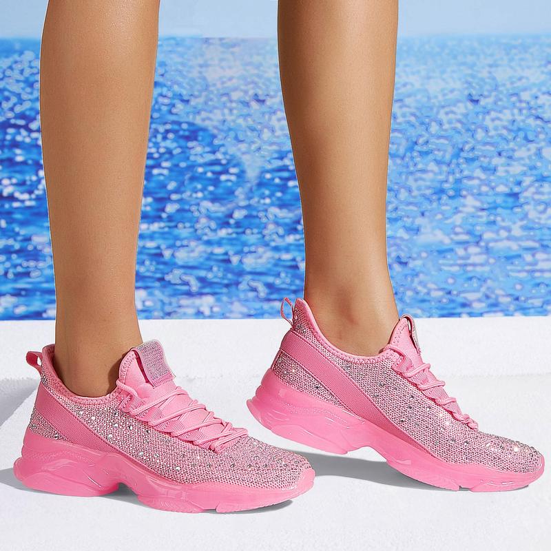 ·STYLISH DESIGN: The fashion sneakers with Rhinestones Embellishment can make you more Attractive and Dazzling! Sculpted chunky transparent outsole looks like jelly, super cute and beautiful, real eye catcher!