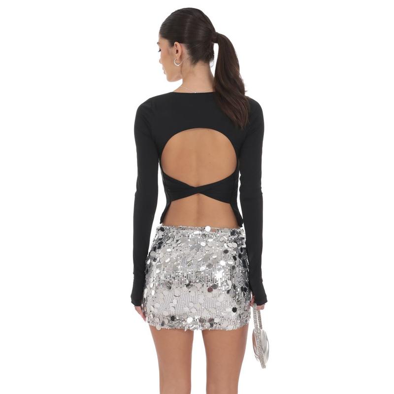5. Circle Sequin Skirt in Silver