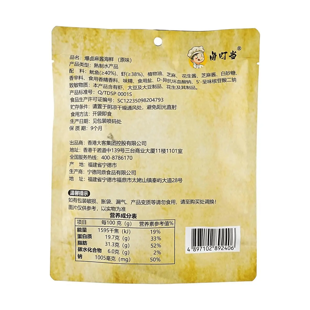 5. LUDINGDANG Spicy Seafood Instant Squid & Shrimp 3-Pack 2.89oz Each - Rich Flavor & Fresh Texture