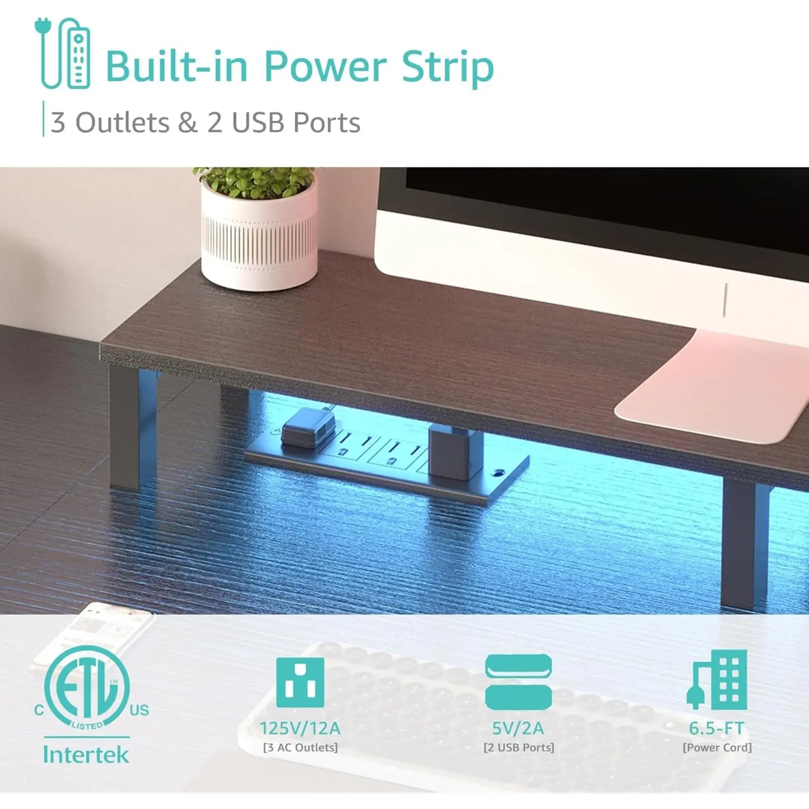 ·Safety Multifunctional Power Strip: The computer desk includes a built-in power strip with 3 power outlets & 2 USB charging ports for your computer, monitor, gaming gear, pad, phone and other electronic devices.