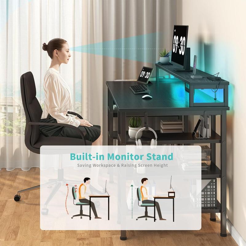 ·Sturdy Structure With Monitor Stand: The monitor stand can meet your requirements for placing 2 monitors or laplops. It can keep your computer at eye-level, which helps you maintain the right posture for your neck and spinal health.