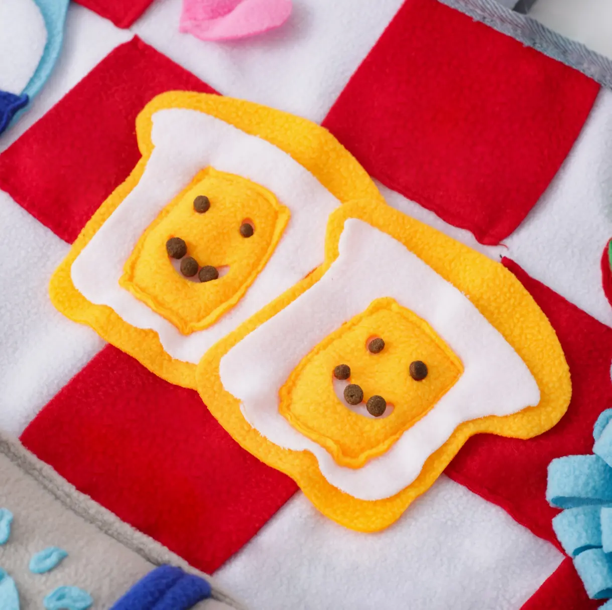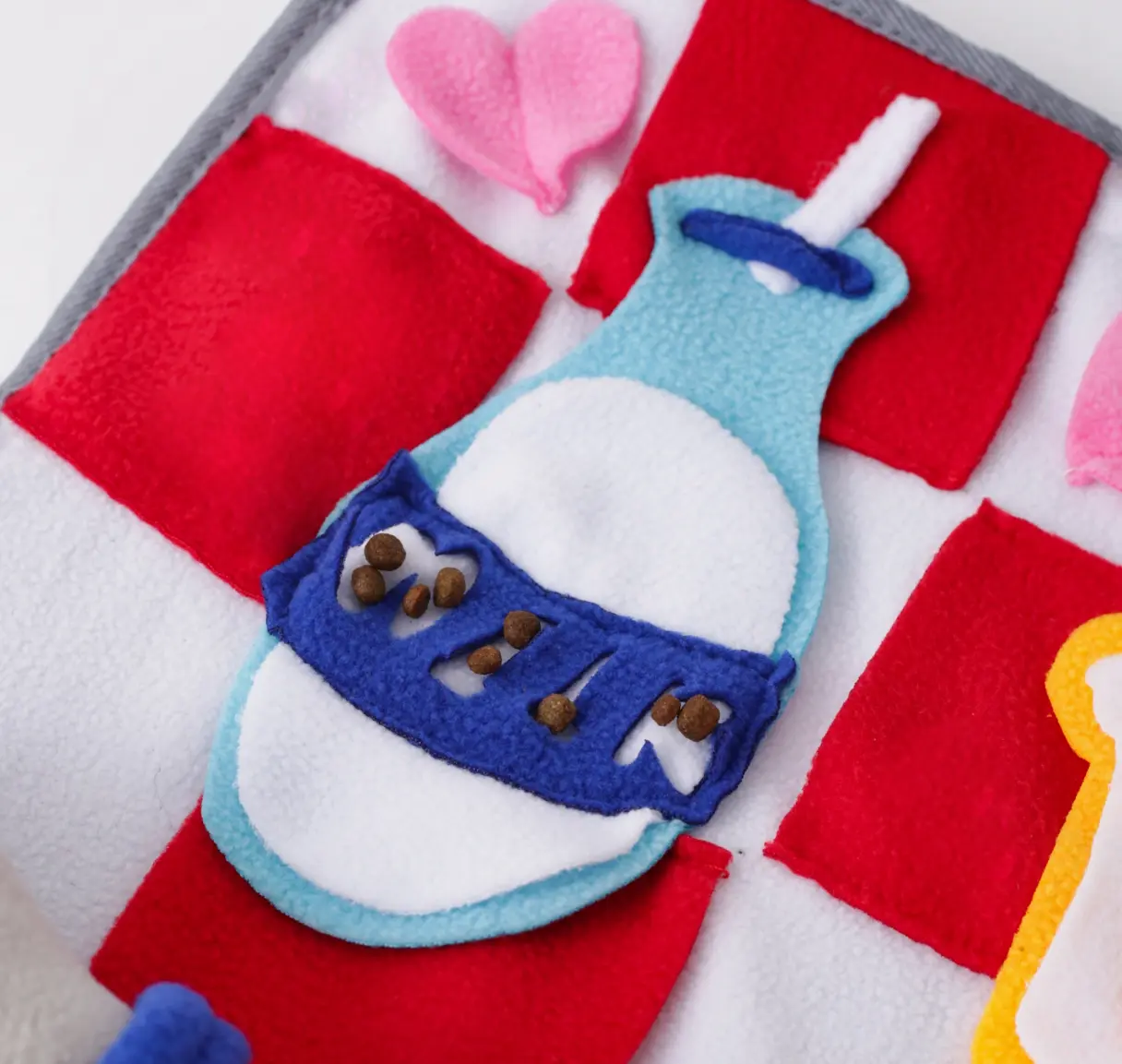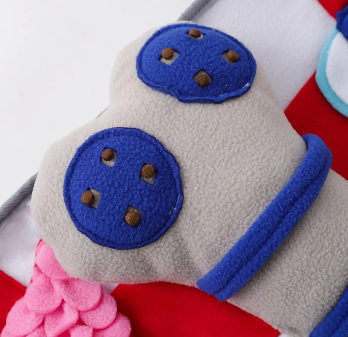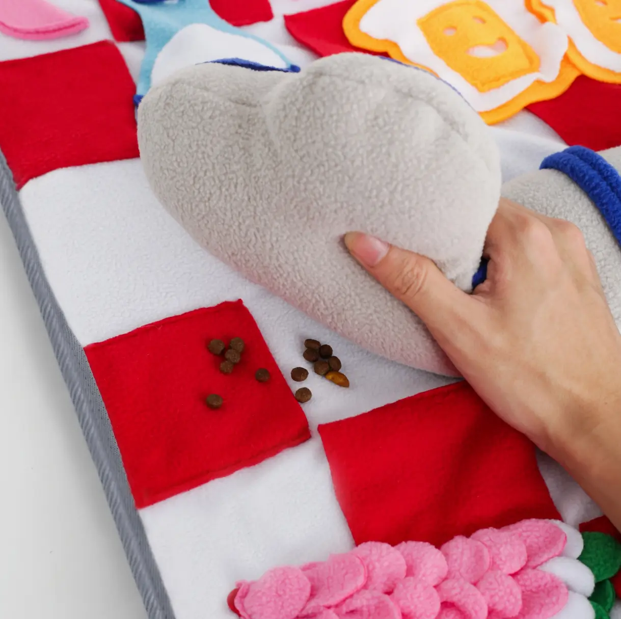 Breaking news! Puppy Paws Boutique is now offering these delicious bone snuffle mats from LuftPets! Anxious and bored dogs looking for something to chew on? Grab one of these new red bone snuffle mats! They feature plenty of pockets to hide treats and bones and a squeaker in the center to get your pet's attention!