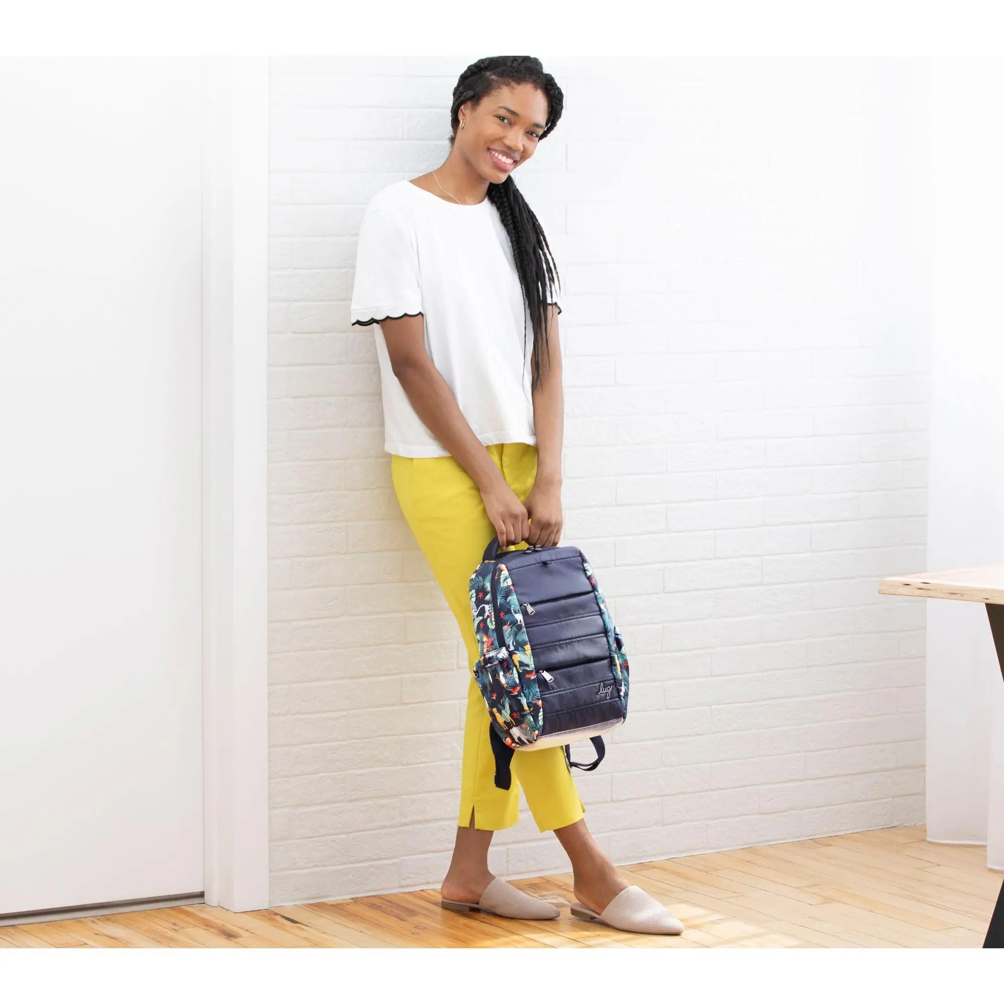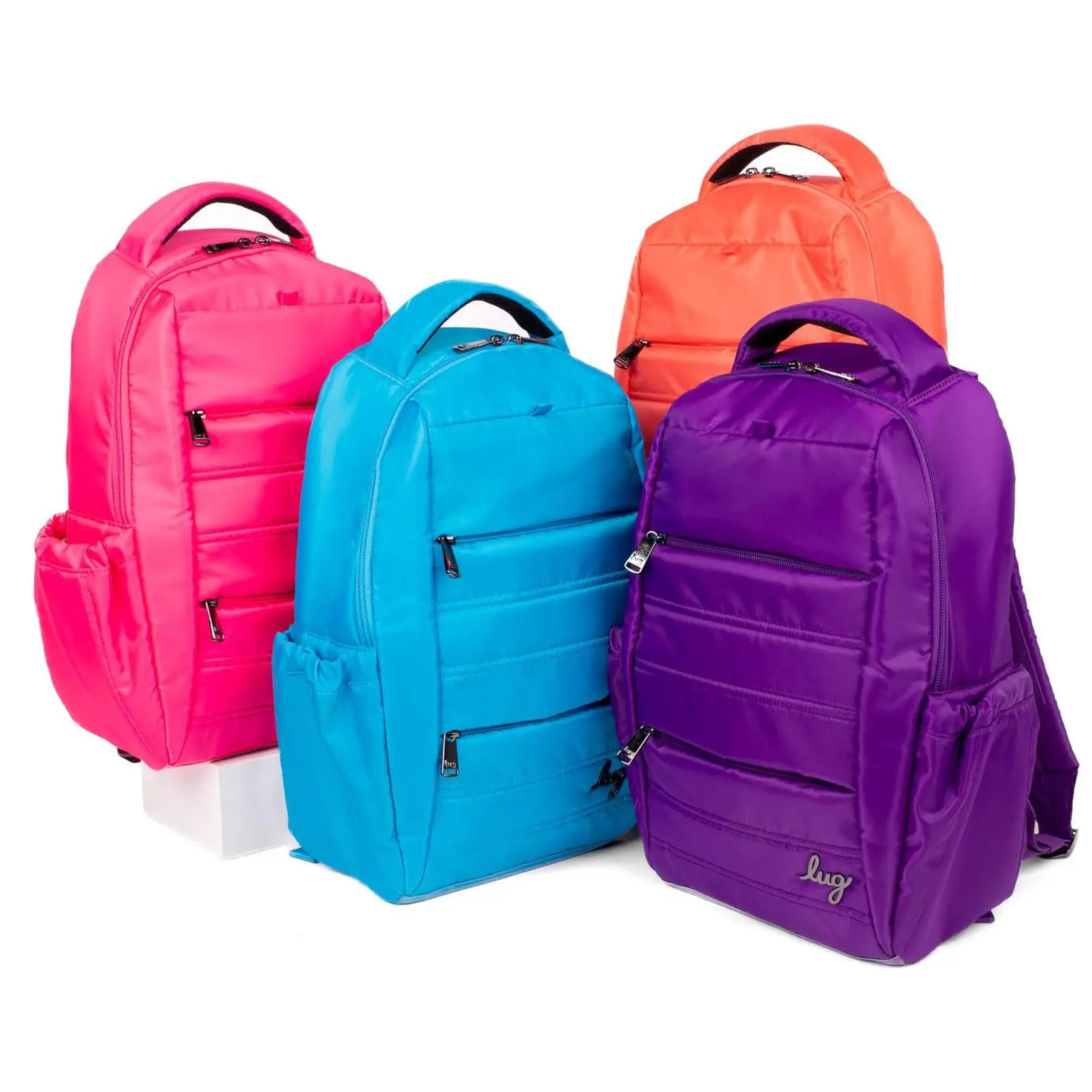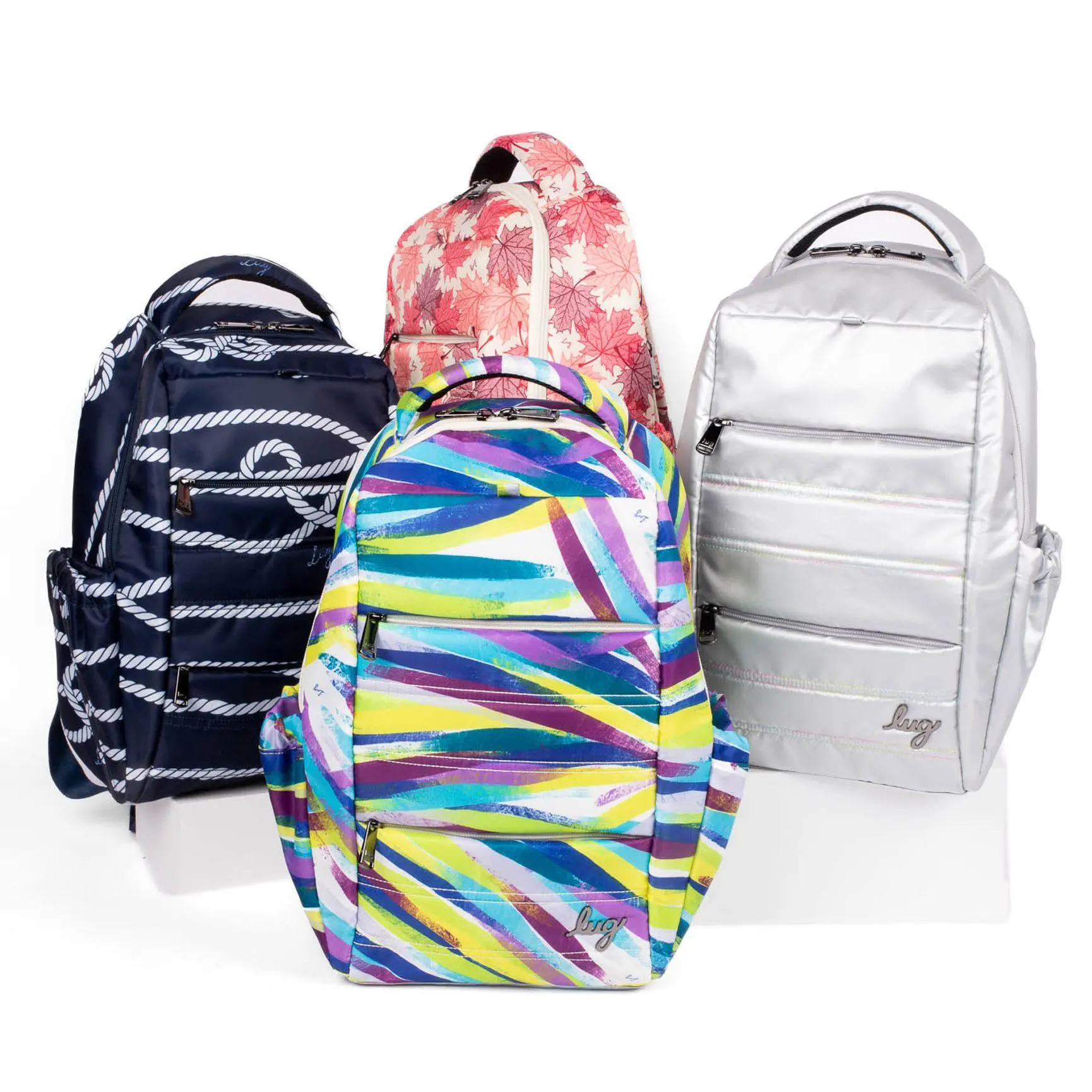 Designed with comfort and functionality in mind, this cute, color-blocked backpack has plenty of pockets (both inside and out), plus a padded back panel, handle, and straps. From Lug.