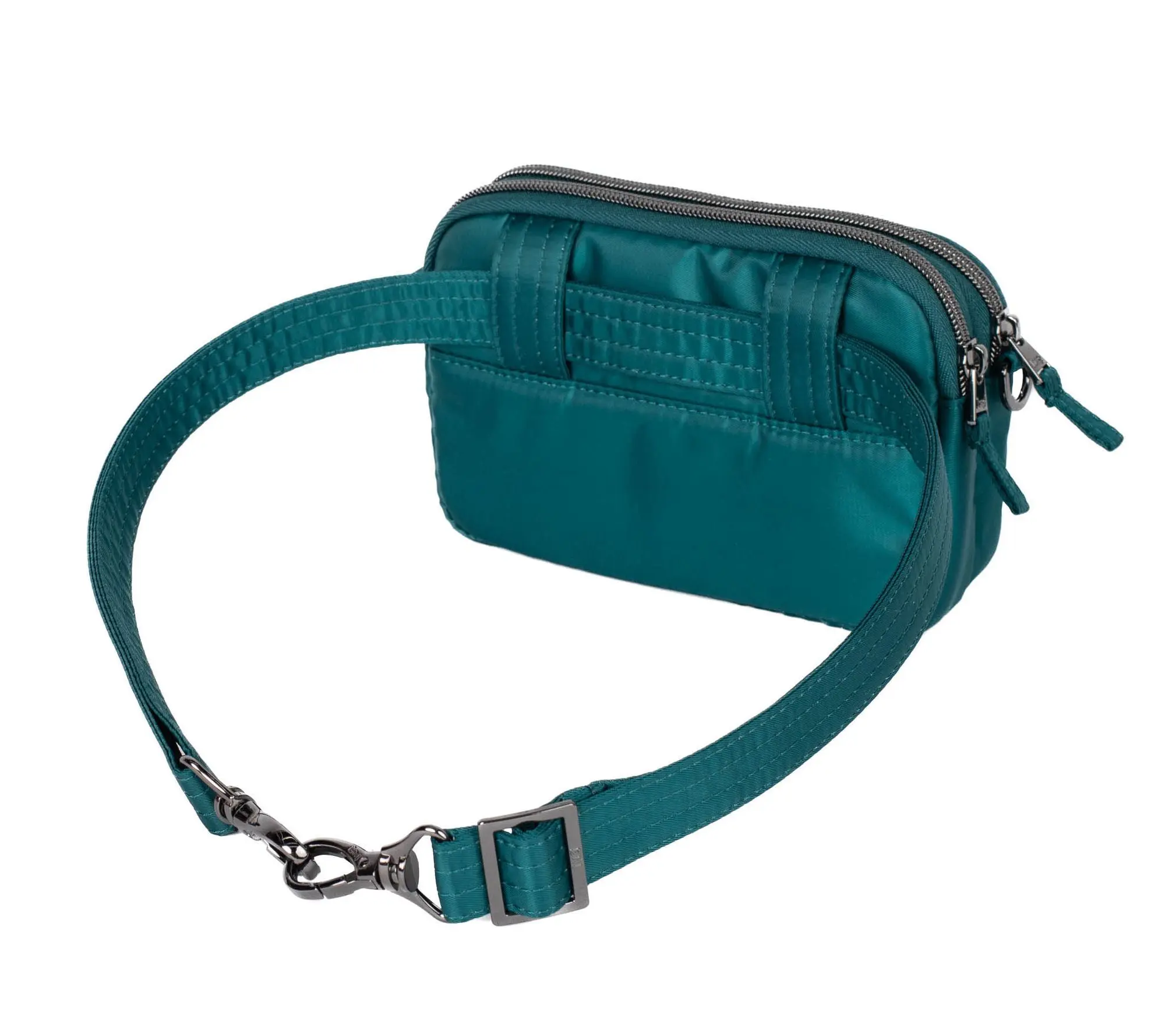 ·Removable crossbody strap, belt loops, two exterior zipper compartments