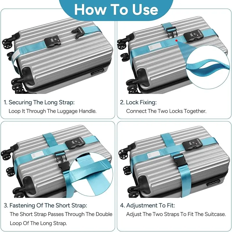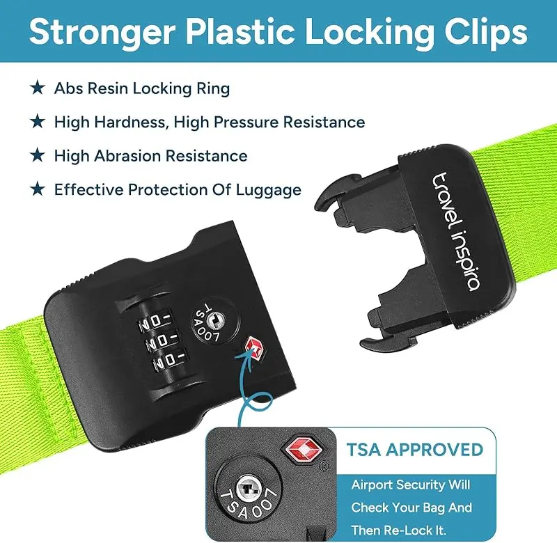 Travel Inspira Luggage Straps, Travel Belt for Luggage, TSA Approved Luggage Straps, 3-Dial Combination Locks Adjustable Suitcase Belt, Quick-Release BuckleTravel Inspira Luggage Straps, Travel Belt for Luggage, TSA Approved Luggage Straps, 3-Dial Combination Locks Adjustable Suitcase Belt, Quick-Release Buckle