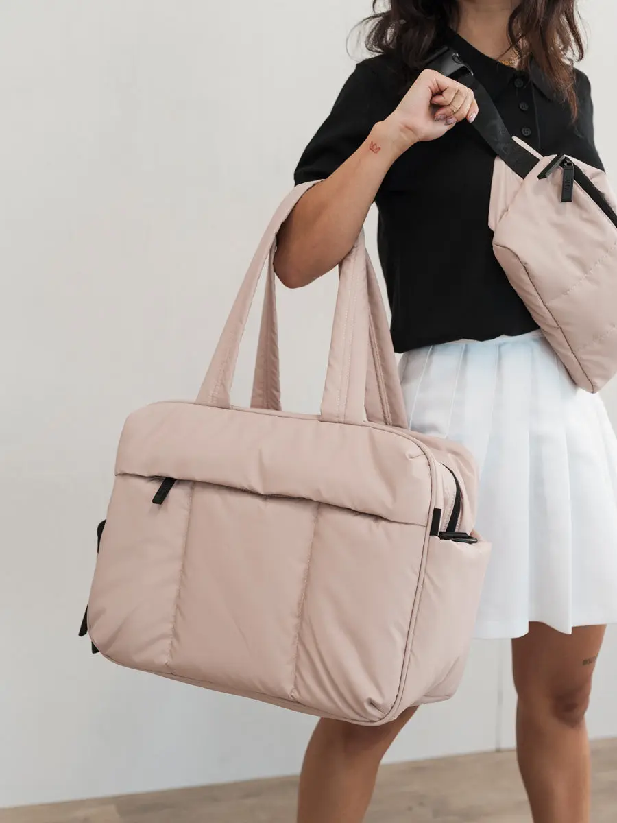 I love the feel of this bag! It is so roomy and fits perfectly on top of my luggage without moving around. I canāt wait to use it on my next trip!