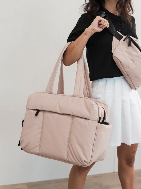 Haven't had a chance to use this bag yet, but I bought it for travel -- as a personal item for air travel, and as a weekender for quick trips. I love the look, love how soft it is, love all the pockets it has and how wide open it becomes when you fully unzip it. I'm looking forward to being able to find and put things away easily while on a cramped flight. I feel like this bag will be the perfect size for flights: large enough that I'll be making the most use of the space under the seat, but small enough that it won't count as a carry-on.