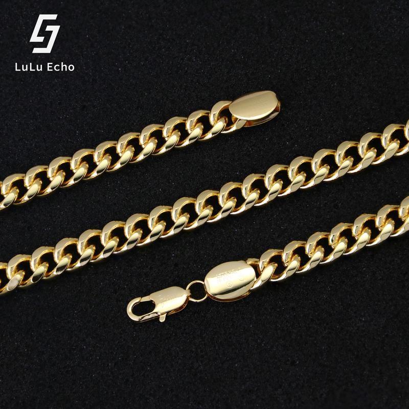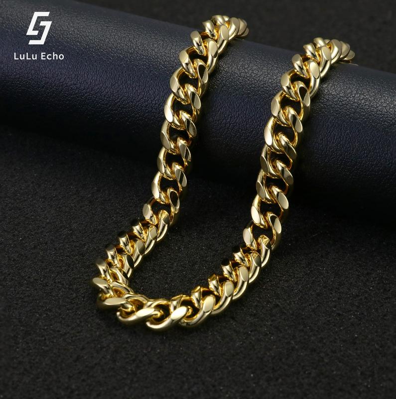 LuLuEcho 14K Gold-Plated Cuban Chain Bracelet Choker for Men and Women, 3/3.5/4.3/6/8/mm Stainless Steel Jewelry, 18-20 cm Length, Valentine Gift