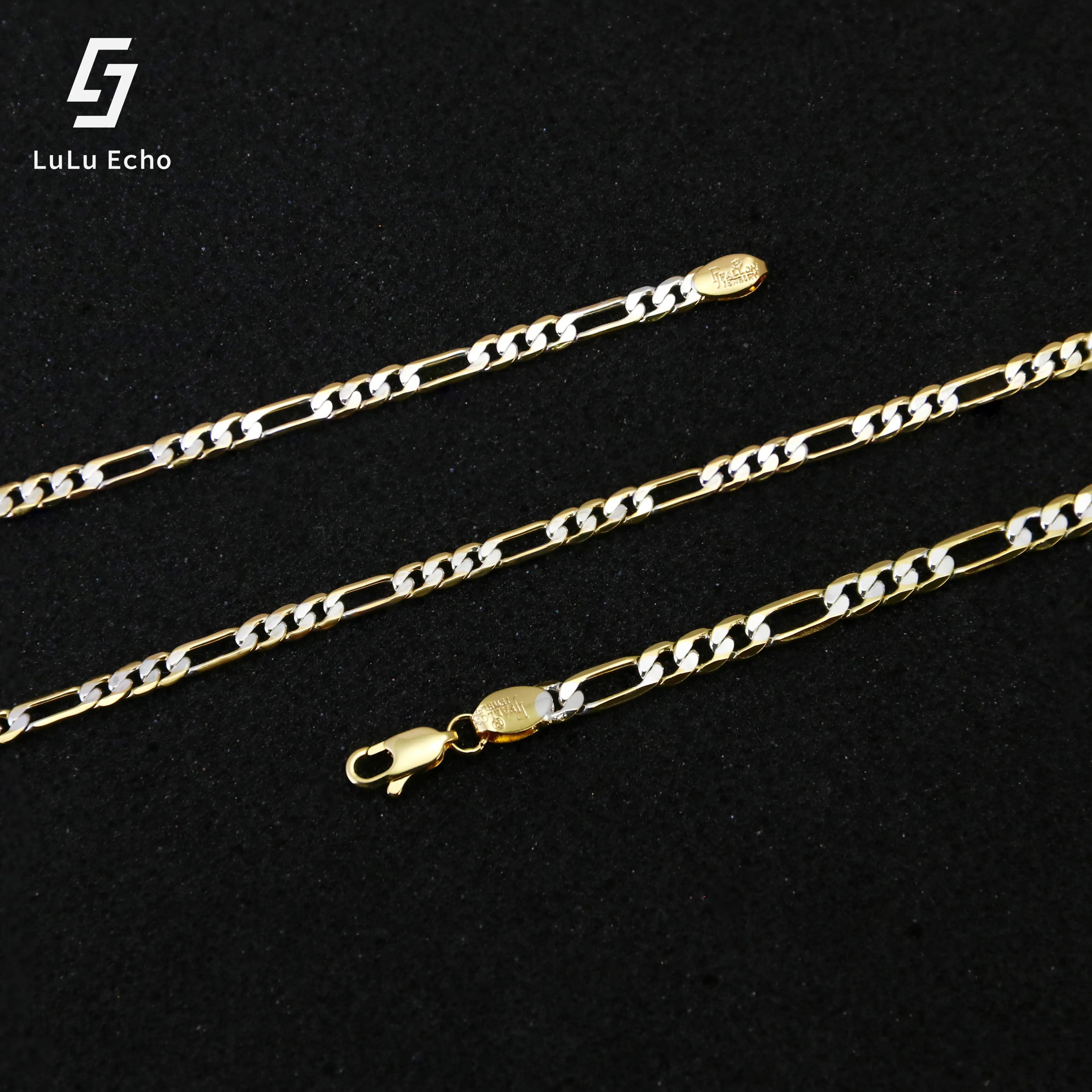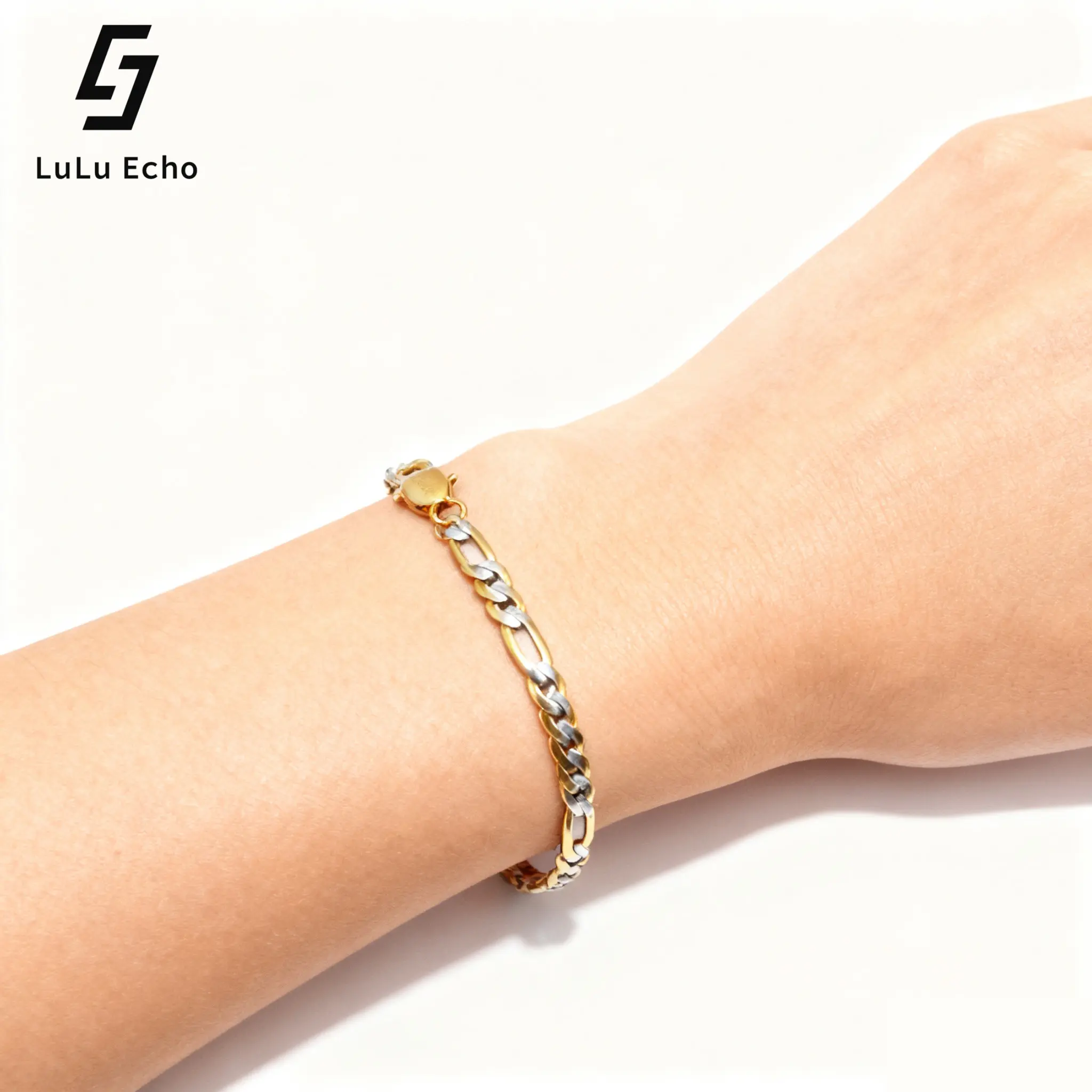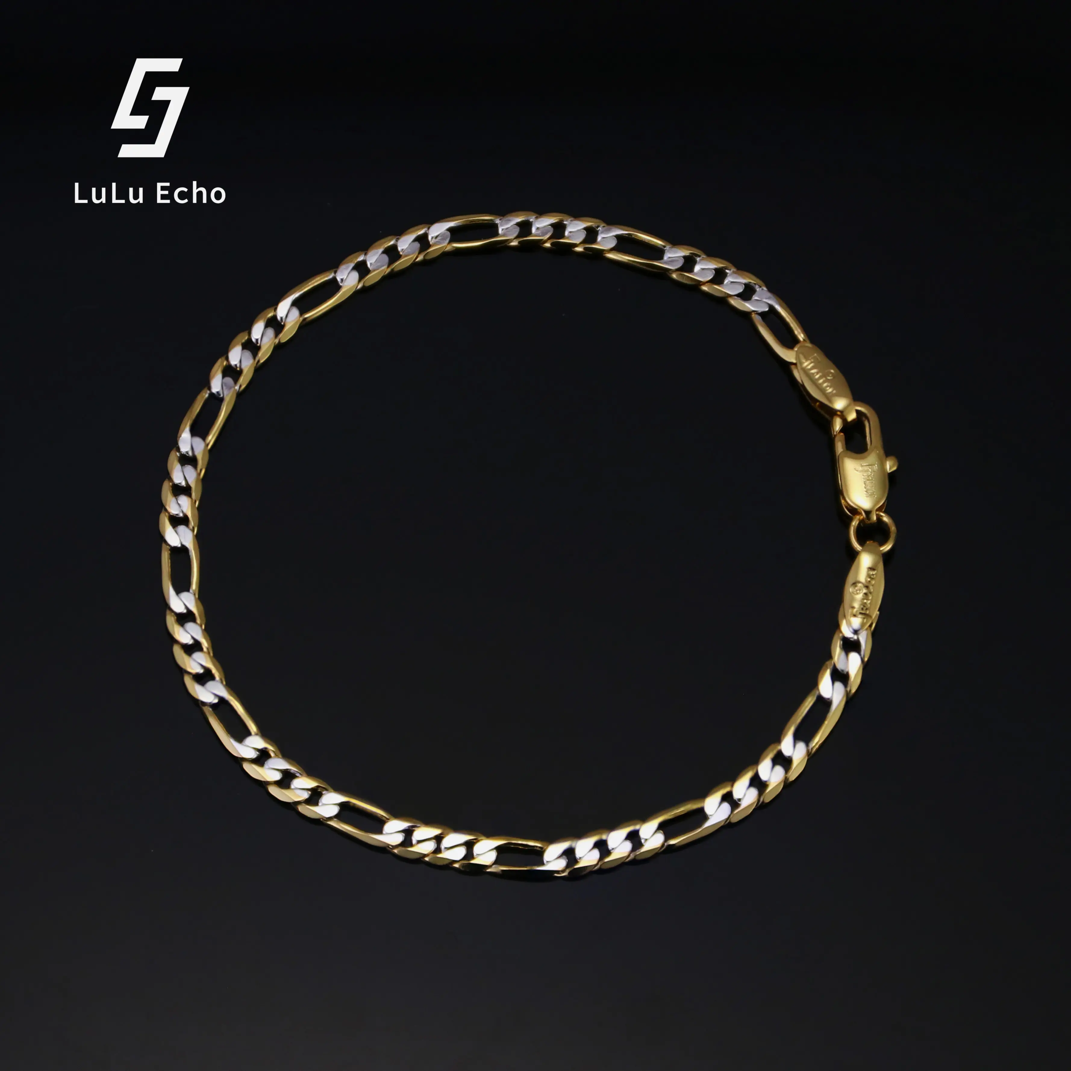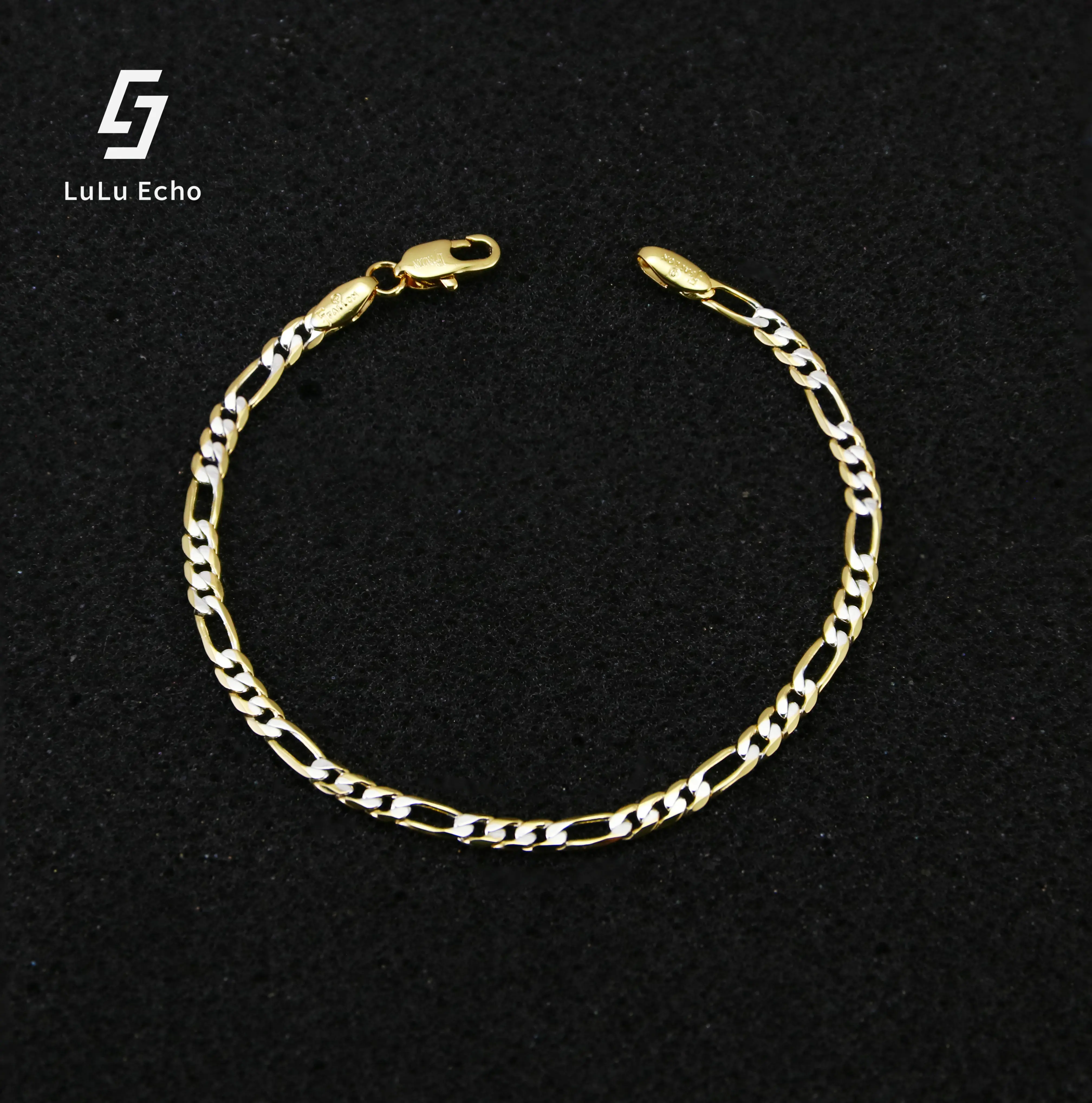 LuLuEcho 14K Gold-Plated Two-Color Figaro Chain Bracelet Summer Jewelry Neutral Accessories Men and Women Layering Bracelets Craft Jewelry