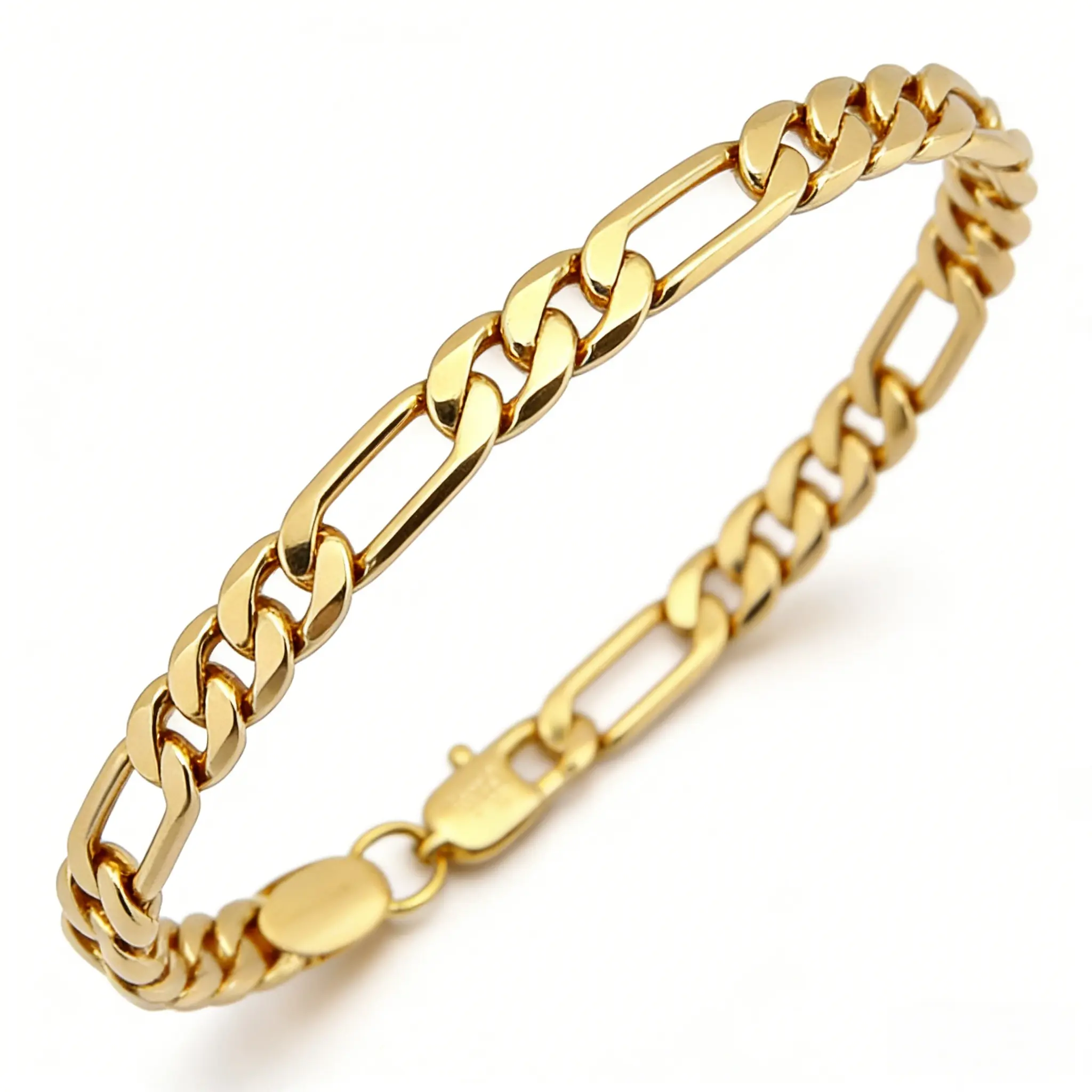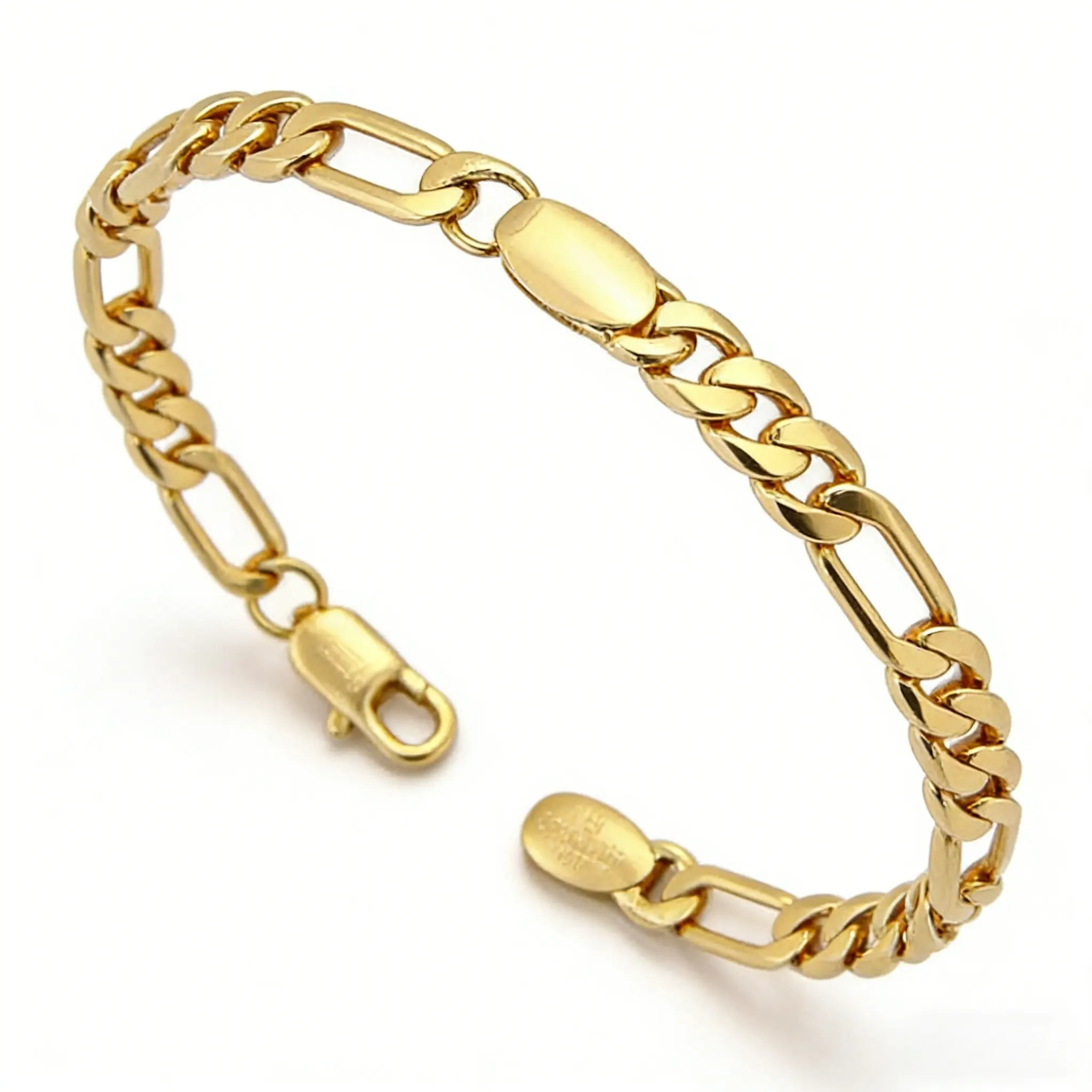 LuLuEcho 14K Gold-Plated Figaro Stamped Chain Bracelet Summer Jewelry Neutral Accessories Men and Women Layering Bracelets Craft Jewelry