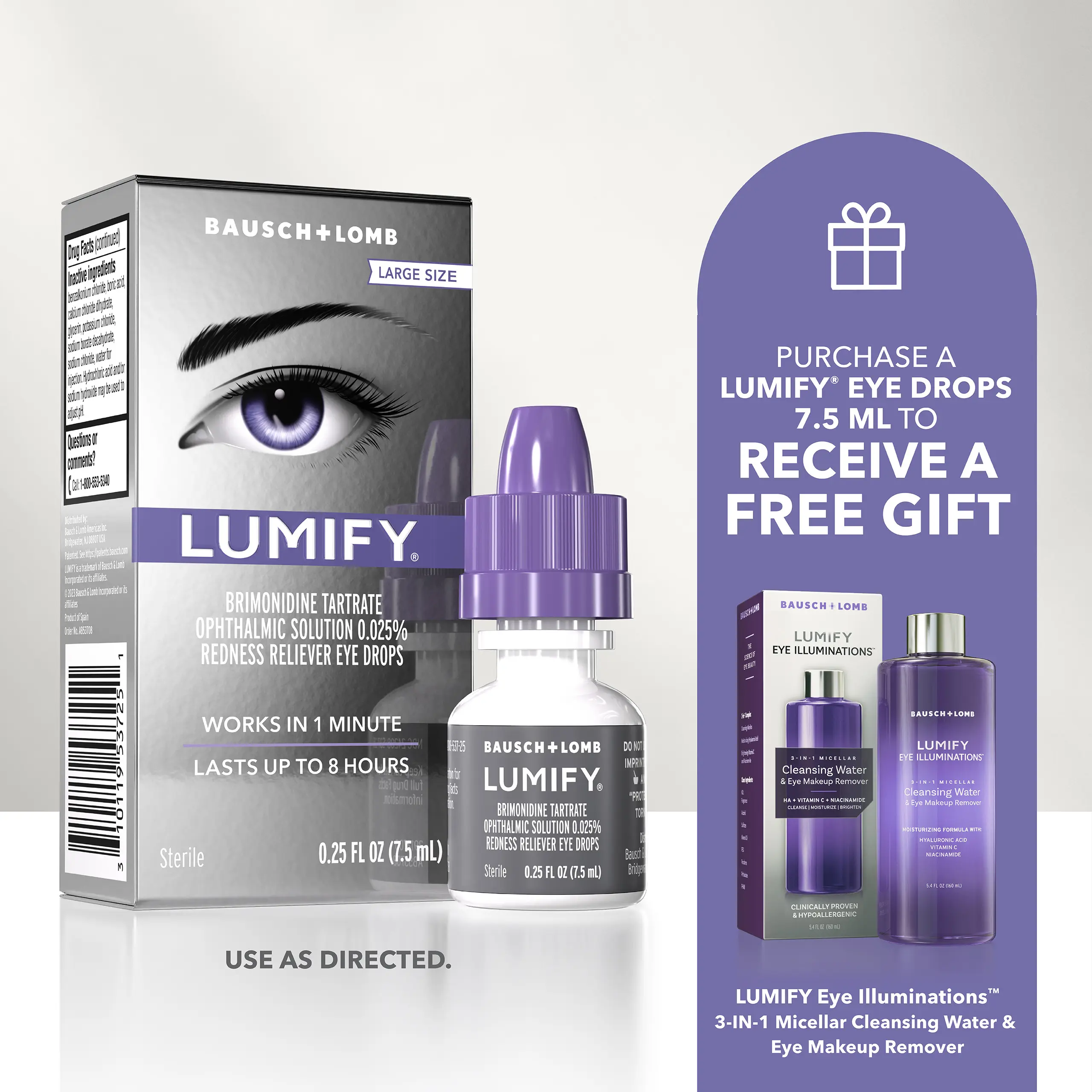Performance: The lumify drops are fabulous! For both comfort and redness. The free eye toner and makeup remover is a great free bonus! Performs as well and a large bottle