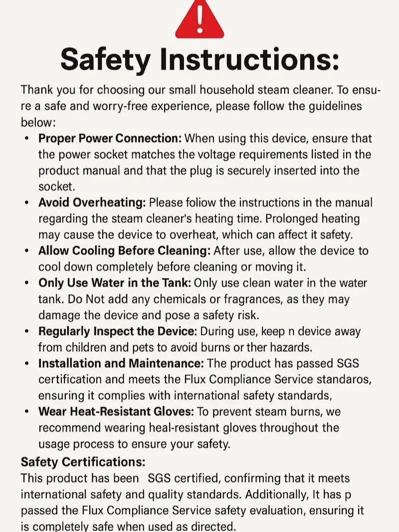 Powerful Steam Cleaning Solution The 2500W handheld steam cleaner is your ultimate cleaning tool. It offers high-temperature and high-pressure steam for thorough cleaning. Perfect for kitchen grease, car detailing, and bathroom cleaning. This versatile steamer ensures a spotless environment effortlessly. Comes with 16 accessories for enhanced functionality.Portable and Convenient This portable car steamer is designed for easy portability. Ideal for various cleaning needs around the home and on the go. The set includes 16 accessories, making it a comprehensive solution for multiple cleaning tasks. Simplify your cleaning routine with this efficient and compact steam cleaner.Versatile Cleaning Needs Suitable for kitchen grease, car detailing, and bathroom cleaning, this steam cleaner meets diverse cleaning demands. Its powerful steam capabilities ensure effective removal of dirt and grime. With its 16 accessories, you can tackle various cleaning challenges with ease. Experience hassle-free cleaning with this versatile steamer. Fast & Powerful Hot Steam: it heats up quickly in 3-5 minutes, delivering powerful pressurized steam for up to 7-15 minutes at 230'FNatural & Safe: Our steam cleaners are 100% natural and have no harmful fumes or residues. Suitable for children and pets, providing a healthy and eco-friendly cleaning solution for whole-house cleaning: The handheld steam cleaner is a versatile, multi-purpose cleaning tool that uses high-temperature steam to remove stains from a variety of surfaces without producing harmful fumes or residues. It's great for cleaning hard-to-reach crevices, corners, angles, and a variety of surfaces and materials, including kitchen sinks, barbecue grills, toilets, shower curtains, flooring, children's toys, pet mattresses, cars, sofas, and clothing. Enjoy a healthier, cleaner home with powerful, chemical-free cleaning that is portable and efficient: With its compact, handheld design, you can easily take this steam cleaner anywhere for quick tasks, including home, office, garage, and more. The 9.8-foot power cord ensures efficient operation, and its lightweight design makes it easy to carry from one room to your homePortable, compact and efficient: With its compact, handheld design, you can easily take this steam cleaner anywhere for quick tasks, including home, office, garage, and more. The 9.8-foot power cord ensures efficient operation, and its lightweight design makes it very convenient to carry from room to room at home with powerful accessories: our portable team cleaner comes with a 16-piece accessory set that provides excellent cleaning and ironing results. The kit includes a tilted nozzle, bendable extensions, brush nozzles, fabric steamer tools, rubber wipers for windows/doors, and many other additional features.Our all-in-one steamer ensures a thorough cleaning of your homeTIP: If you can't open the safety lid after using it, wait a few minutes and try again. The safety cover can only be opened when the appliance is turned off and the internal steam is cooled to prevent scalding. Open the hard hat: 1. Unplug the steamer. 2. Turn the steam cleaner upside down. 3. Press the steam trigger to release any remaining steam