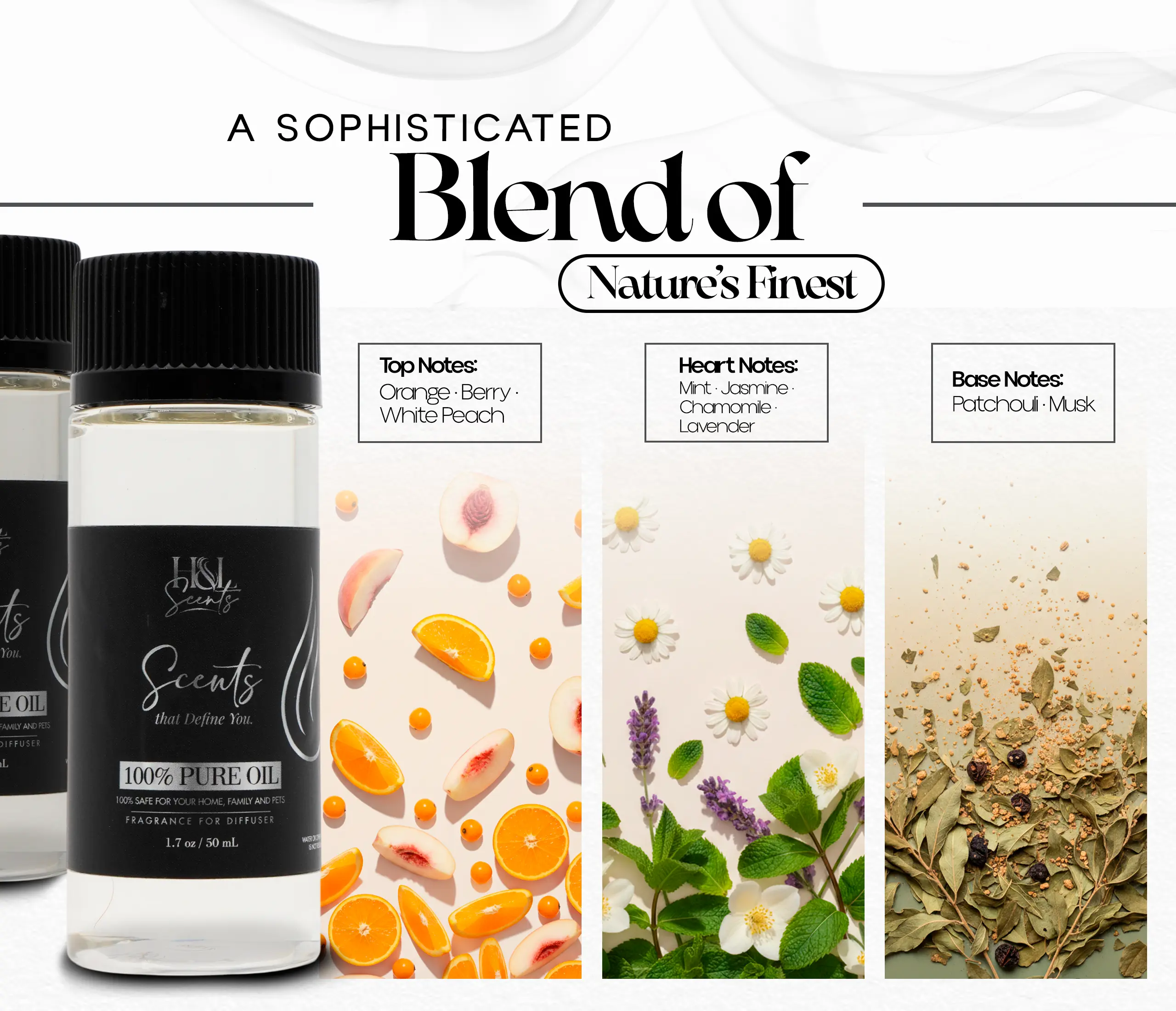The base notes of patchouli and musk provide a warm, grounding finish, enhancing the overall scent complexity.