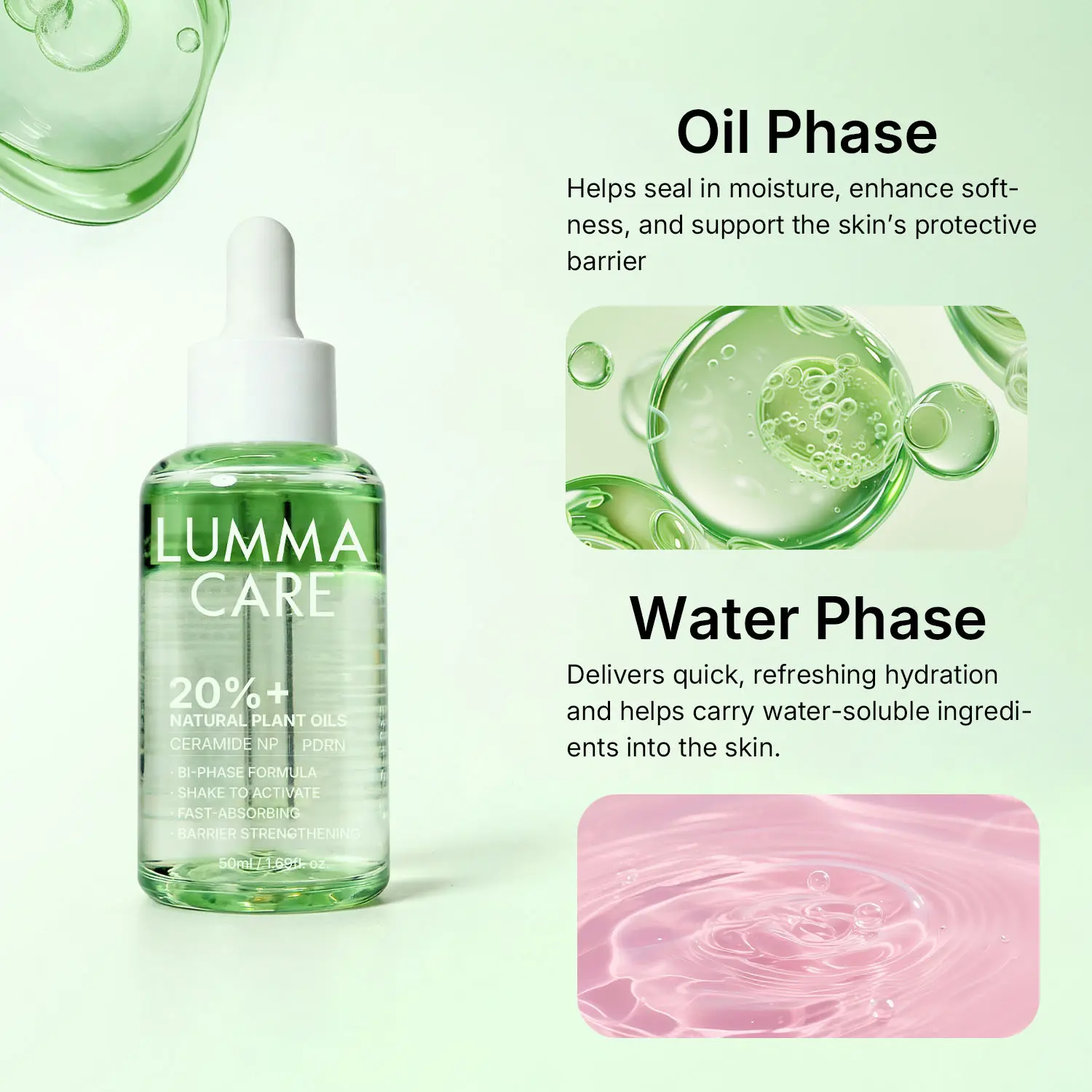 ·Biphasic oil-water formula: Delivers both hydration and comfort.