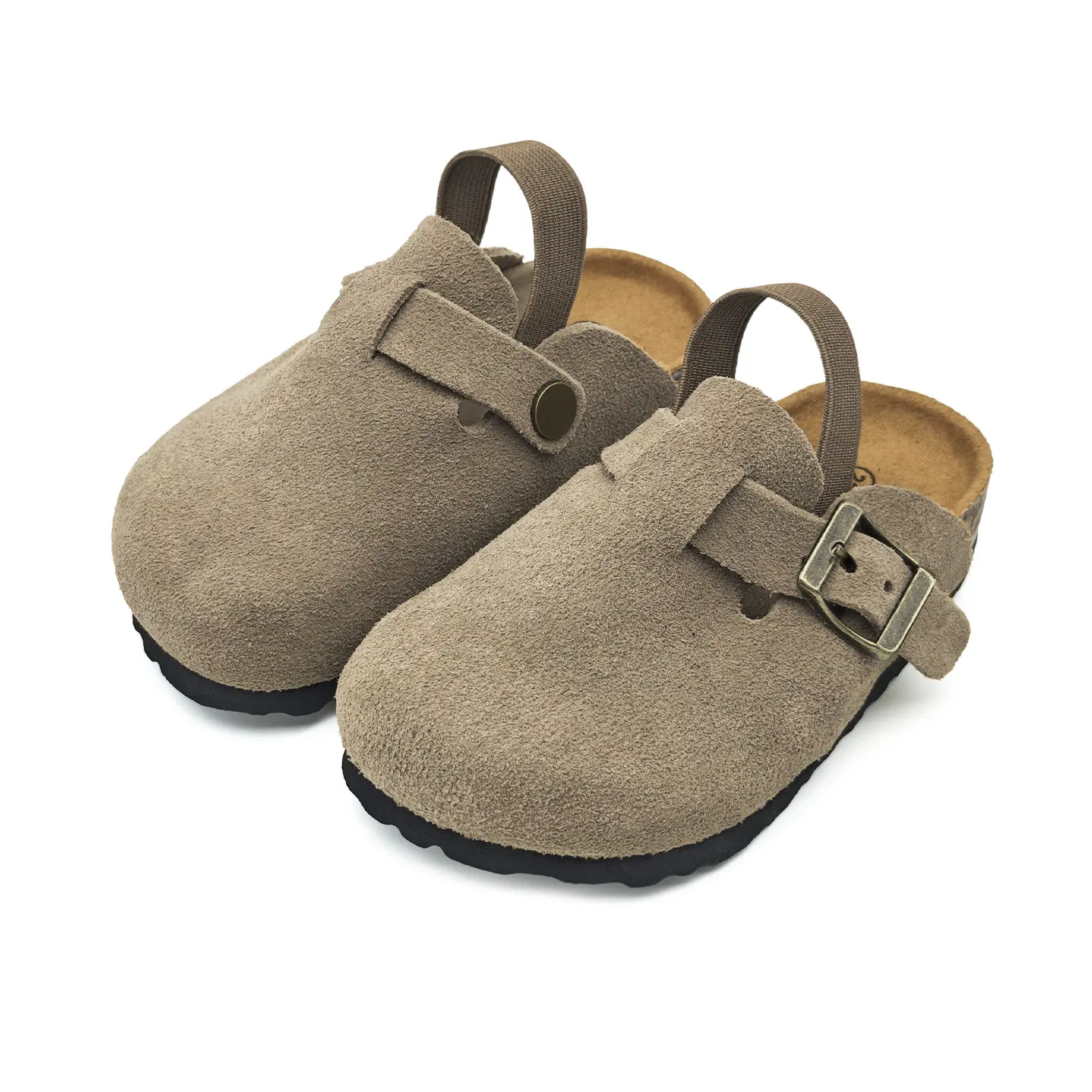 Kids Suede Clogs Toddler Clogs Boys Girls Sandals Cork Footbed Indoor Outdoor Cute Sandals Classic Adjustable Buckle Round Toe Anti Slip Soft Footwear Comfortable Slip On Design