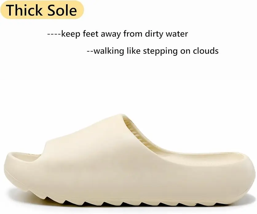 These non-slip, quick-drying shower slides are perfect for both women and men. Made from breathable EVA material, they offer a lightweight feel. The deep heel cup and concave vamp provide a roomy toe box, absorbing impact for safe toes. With a 1.7-inch thick sole, these slides enhance cushioning. The anti-slip textured style prevents slipping and falling.