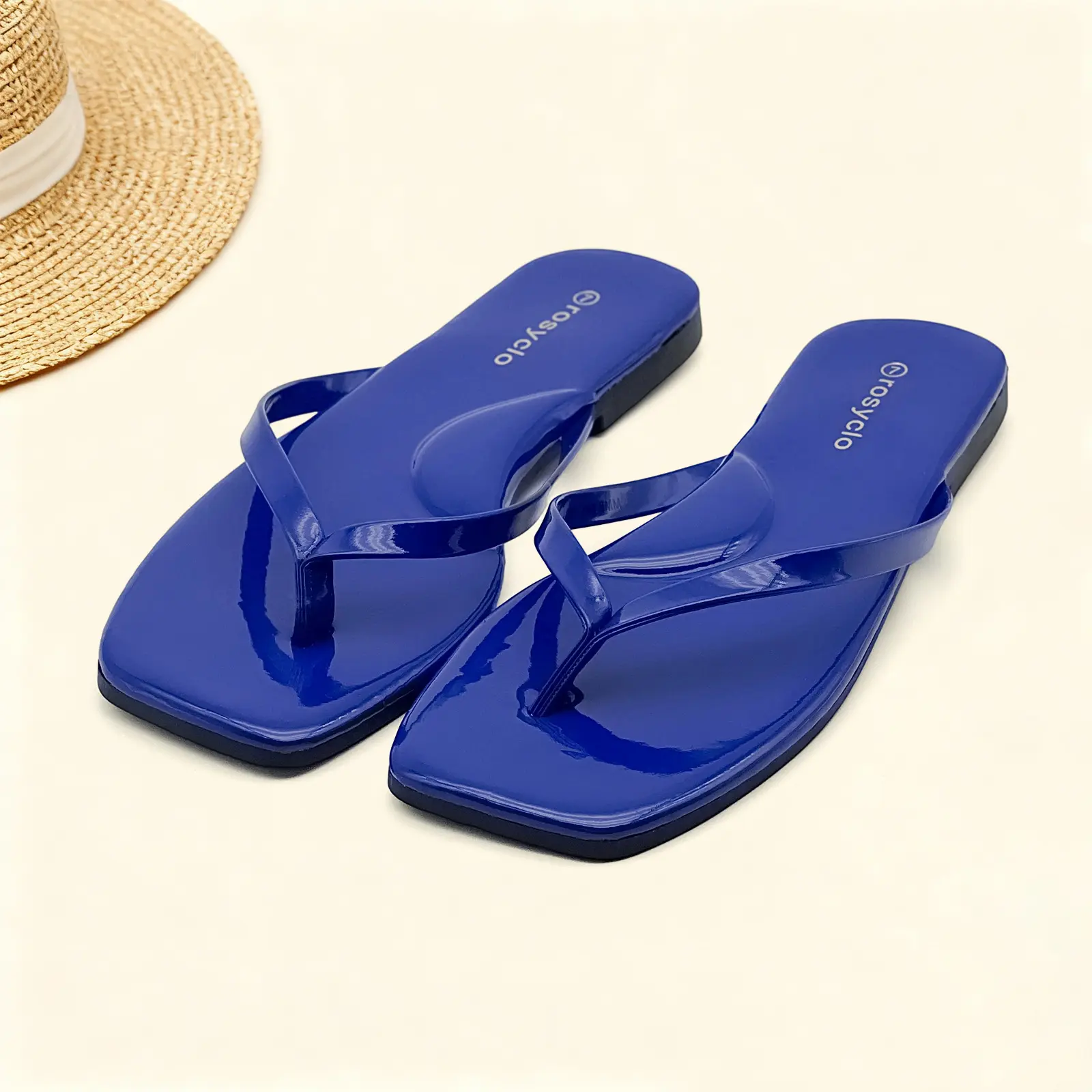 Lumubby Shiny Mirror PU Square-Toe Flip Flops Unisex Comfort Casual Sandals for Daily Wear Lightweight Easy to Clean Stylish Design Summer Shoe Flipflop