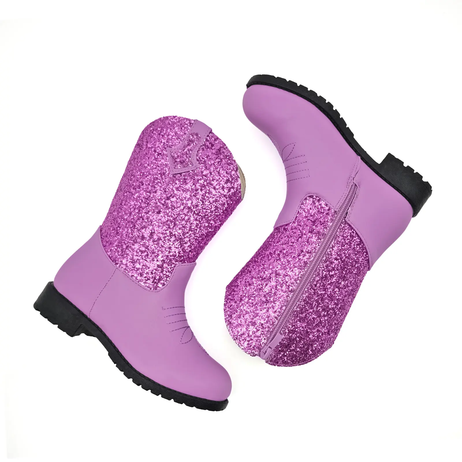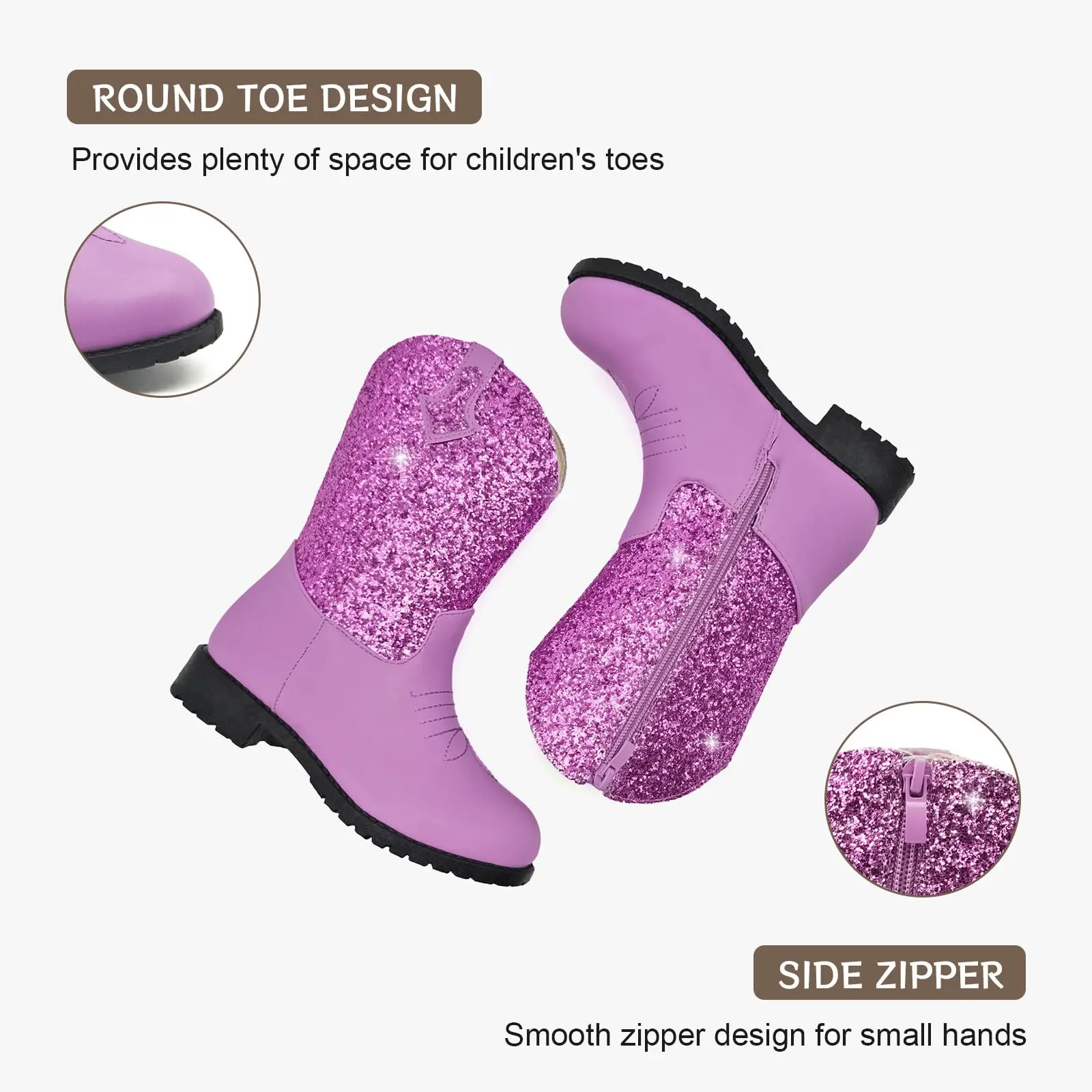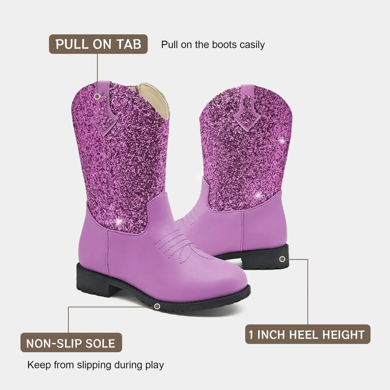 Ideal for girls and boys from little to big kids. These mid-calf, round-toe boots are perfect for various occasions. Light up every celebration with these fun and sparkling boots.