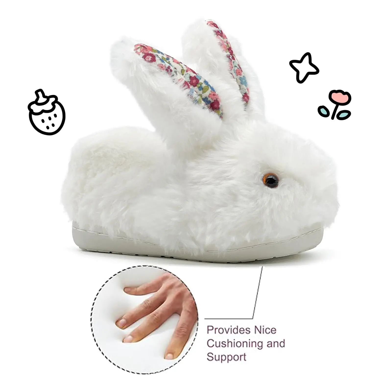 ·These toddler slippers feature 3D bunny eyes and ears, making them incredibly attractive. Kids will adore these charming slippers, ensuring they enjoy every step. The design is not just cute but also functional, perfect for indoor use.