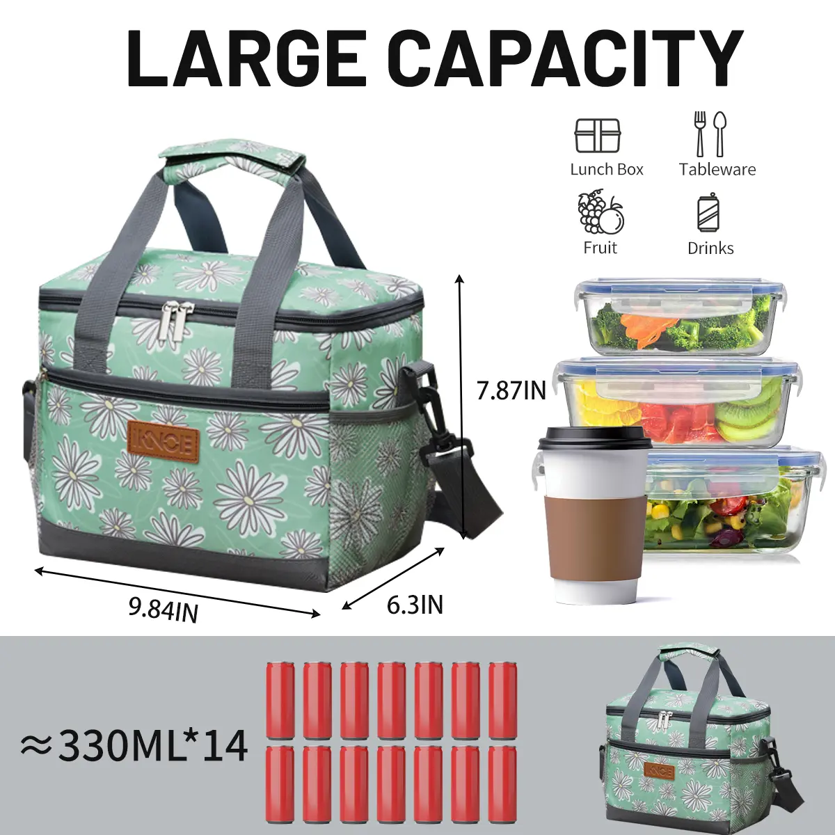 Lunch Box for Women Men, Reusable Insulated Lunch Tote. This large leakproof lunch cooler is ideal for work, picnics, and camping. It offers high capacity, ensuring your meals stay fresh. Choose from various stylish designs to match your personality. 🌸