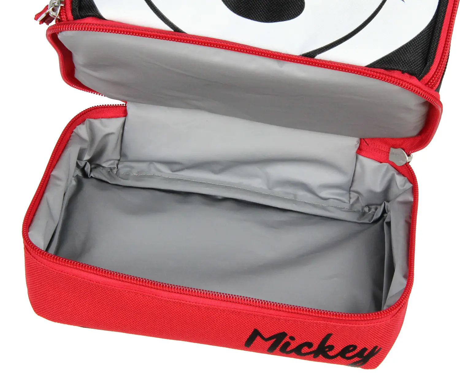 This Mickey Mouse Lunch box is a great one. The dual compartment design will keep your lunch just how you like it. The cute design features a mickey mouse winking face and 3D ears that stand up. Zipper closure design and padded carrying handle make this perfect for those young and old. Makes a great gift too.These are the best! This lunchbox measures 10" x 8" x 3" GREAT Disney Product Comfortable, padded carrying handle 100% PVC free with PEVA linings Superior quality closed cell polyethylene foam insulation Wipe clean with damp cloth. This lunchbox measures 10" x 8" x 3" Mickey Winking Face and 3D Ears That Stand Up