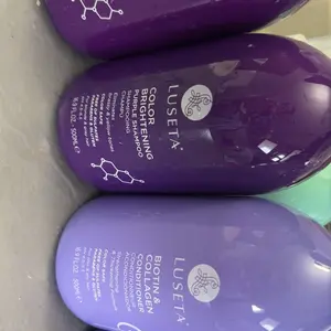 Conditioner: Water, Cetearyl Alcohol, Glycerin, Ceteartrimonium Chloride, Dimethicone, Isopropyl Myristate, Phenoxyethanol, Alcohol, Fragrance, Hydroxyethylcellulose, Behentrimonium Chloride, Sodium Benzoate, Isopropyl Alcohol, Cocamidopropyl Betaine, Citric Acid, Panthenol, Tetrasodium EDTA, C12-13 PARETH-3, Guar Hydroxypropyltrimonium Chloride, Isopropyl Palmitate, Hydrolyzed Collagen, Argania Spinosa Kernel Oil, Disodium Phosphate, Polysorbate 60, Hydrolyzed Keratin, Sodium Phosphate, Butylene Glycol, 1,2-Hexanediol, Ethylhexylglycerin, Hydroxyacetophenone, Biotin, Tripeptide-1, D&C Red No. 33, Ext. D&C Violet No. 2