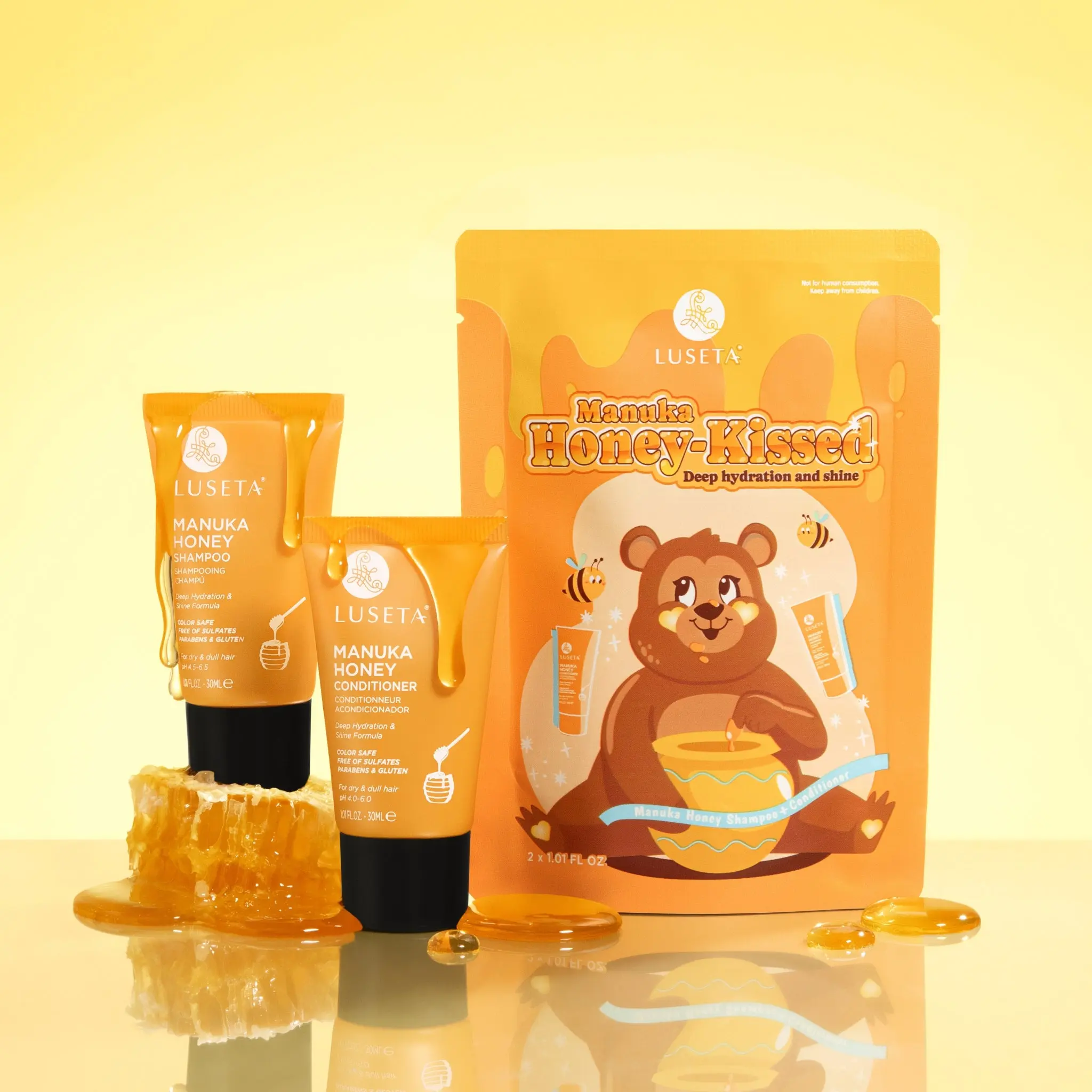 This Bundle is so good! It always makes me feel like my hair is extra clean after a shower, and OMG the softness and shine that it gets is wild. I also use the honey serum and I cant recommend it enough.