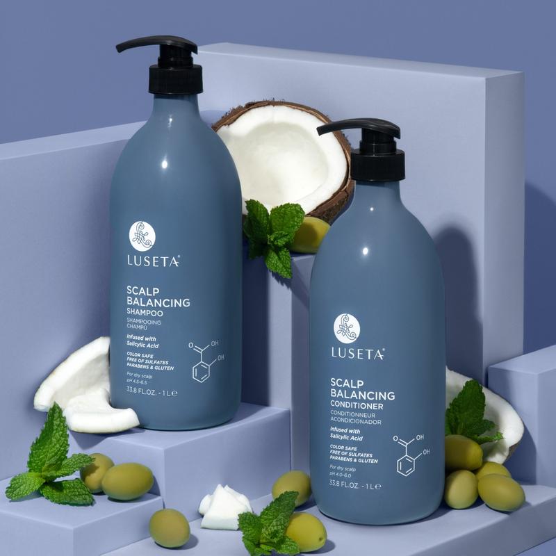 Luseta scalp-balancing shampoo and conditioner duo, infused with Salicylic Acid, gently exfoliates to remove buildup while nourishing the scalp for long-lasting freshness. This lightweight pair hydrates, soothes irritation, and restores balance, leaving hair soft, clean, and revitalized.