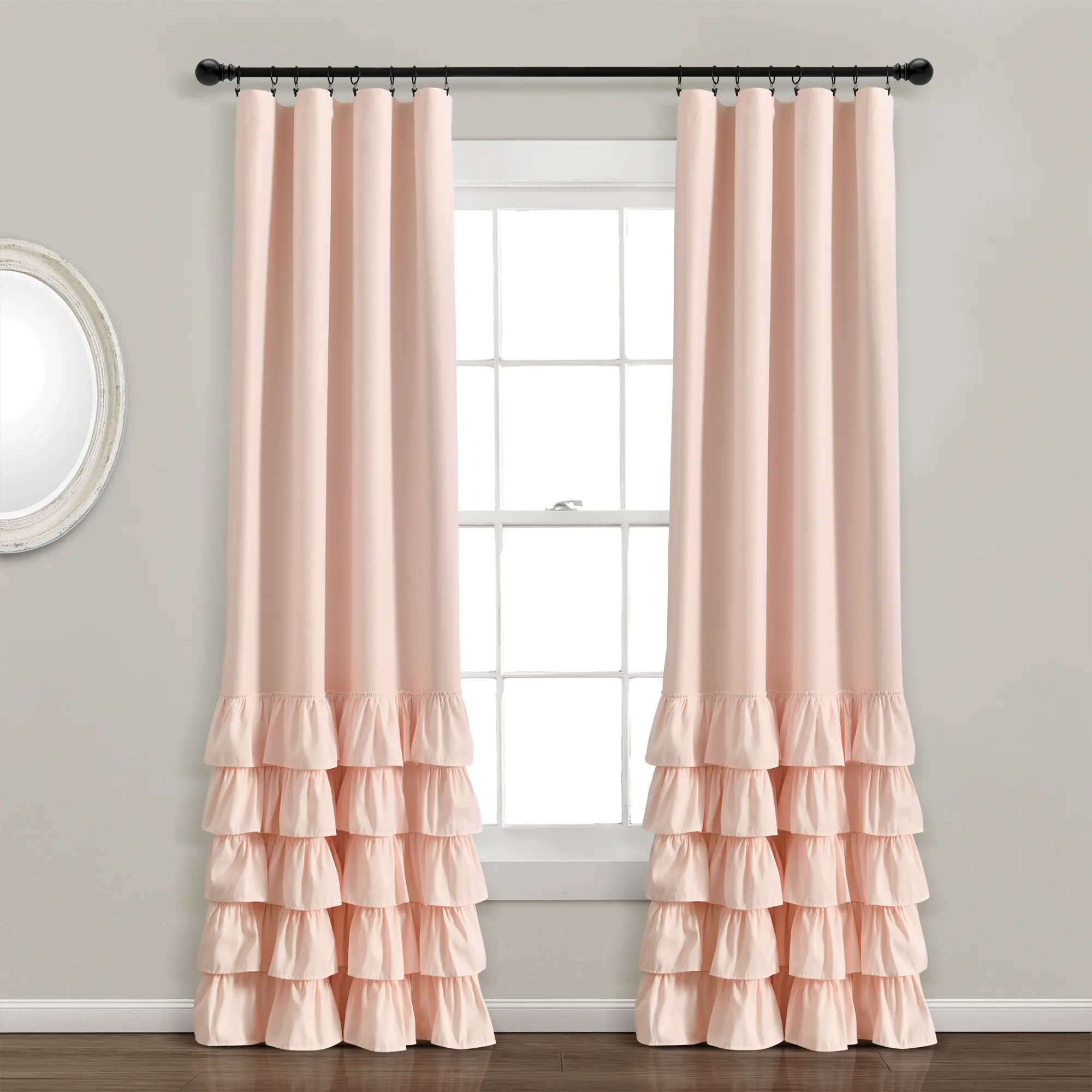5. Lush Decor Allison Ruffle 100% Lined Blackout Single Window Curtain Panel Flat Weave Microfiber Fabric 40 Inches Wide Energy Efficient Privacy Panel