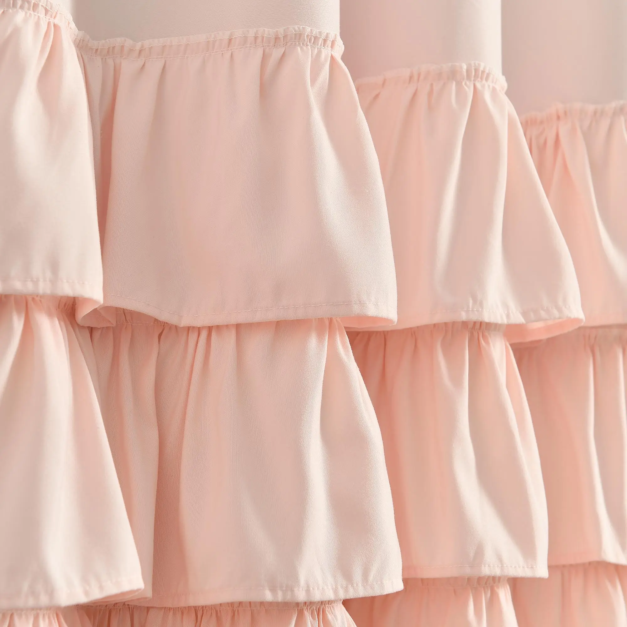 The Lush Decor Allison Ruffle Blackout Curtains add a touch of elegance to any room. The ruffled layers at the bottom create a frilly, textured look. Perfect for nurseries, primary bedrooms, or dorm rooms, these curtains offer maximum privacy. They are 100% blackout, blocking sunlight, reducing noise, and regulating room temperature. The off-white lining meets most HOA requirements.