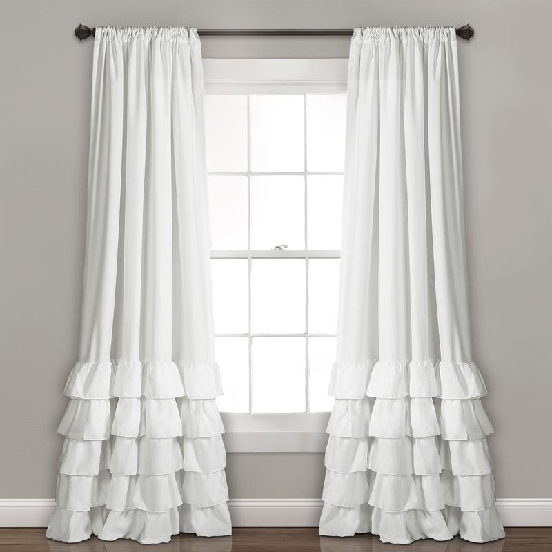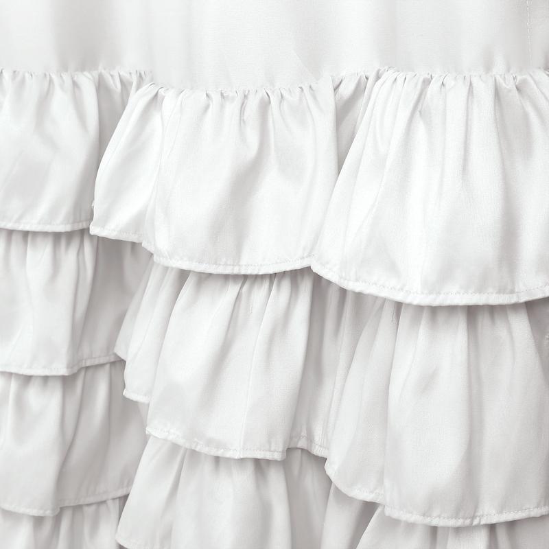 The Lush Decor Allison Ruffle Window Curtain Panels set adds a touch of elegance to any room. The ruffled layers at the bottom create a frilly, textured look. Perfect for nurseries, primary bedrooms, guest rooms, or dorms, these curtains offer moderate privacy and filter sunlight. Each panel is 40 inches wide, available in multiple lengths.