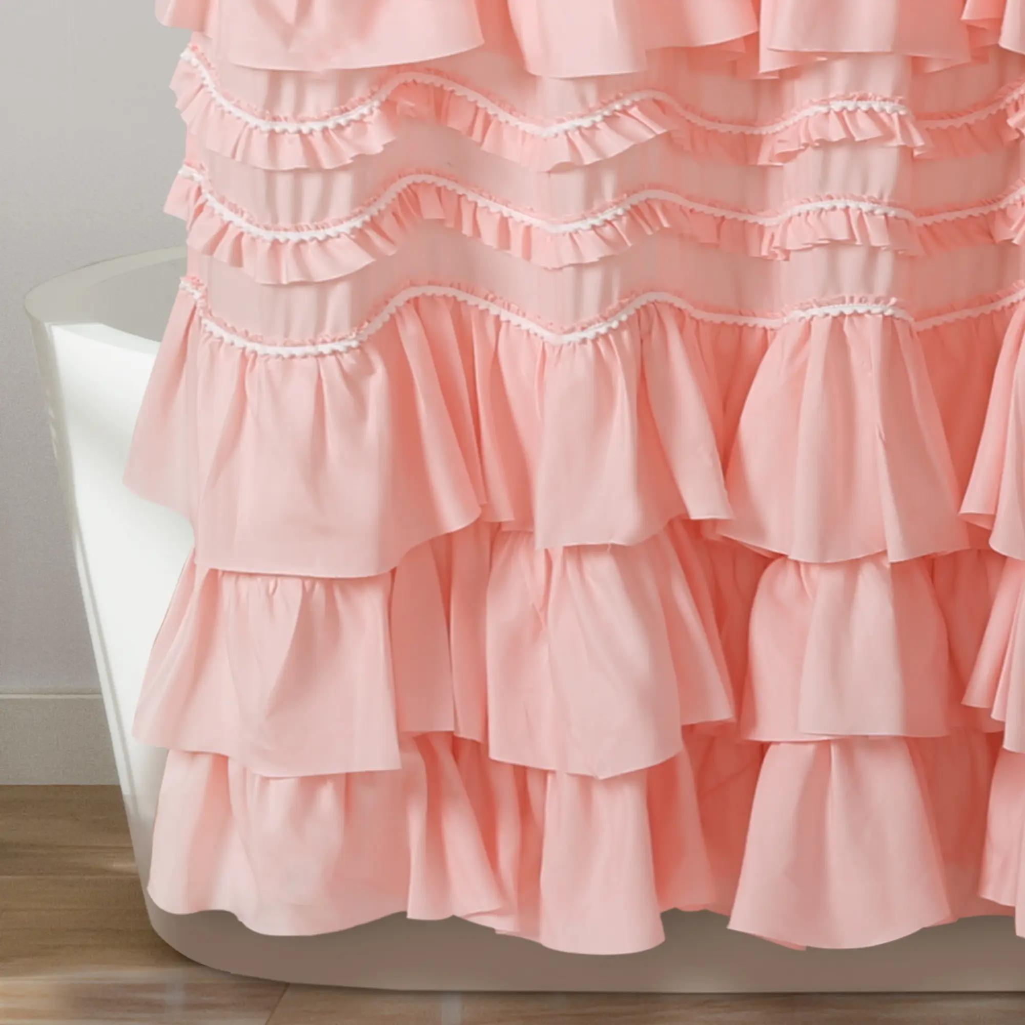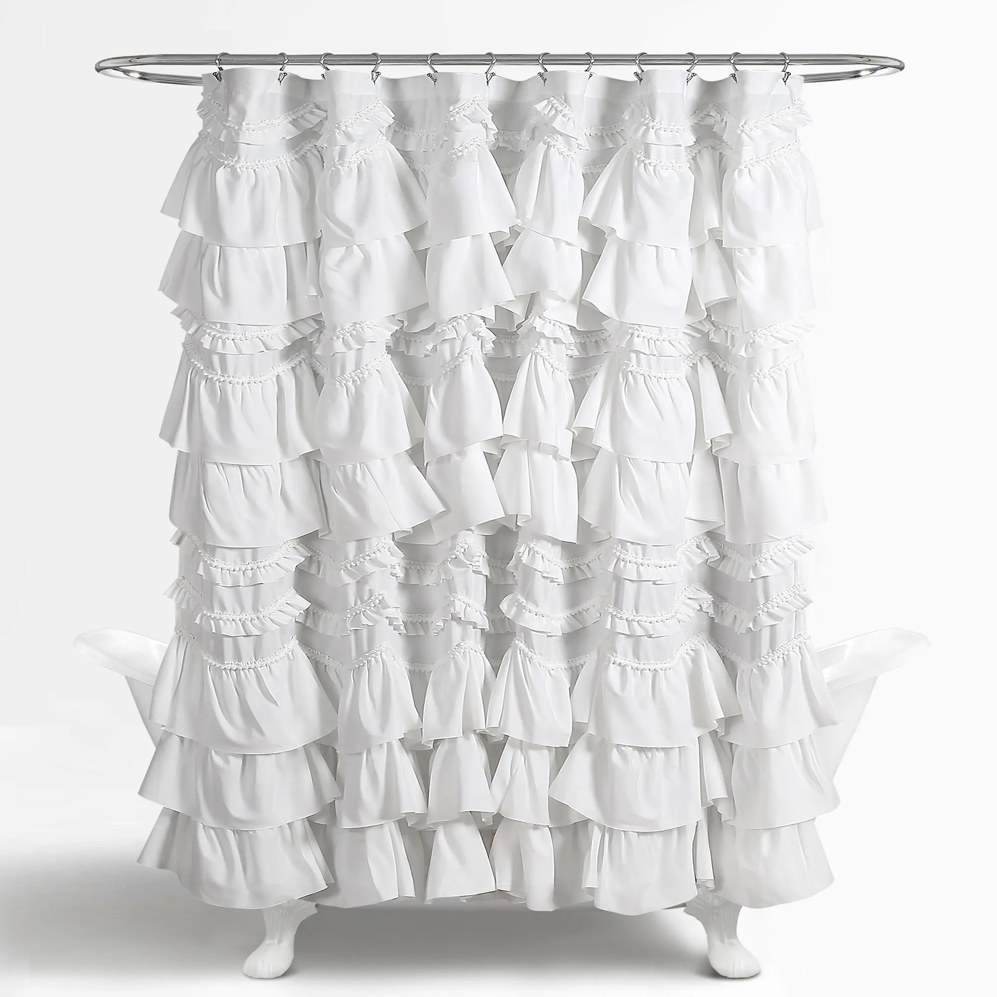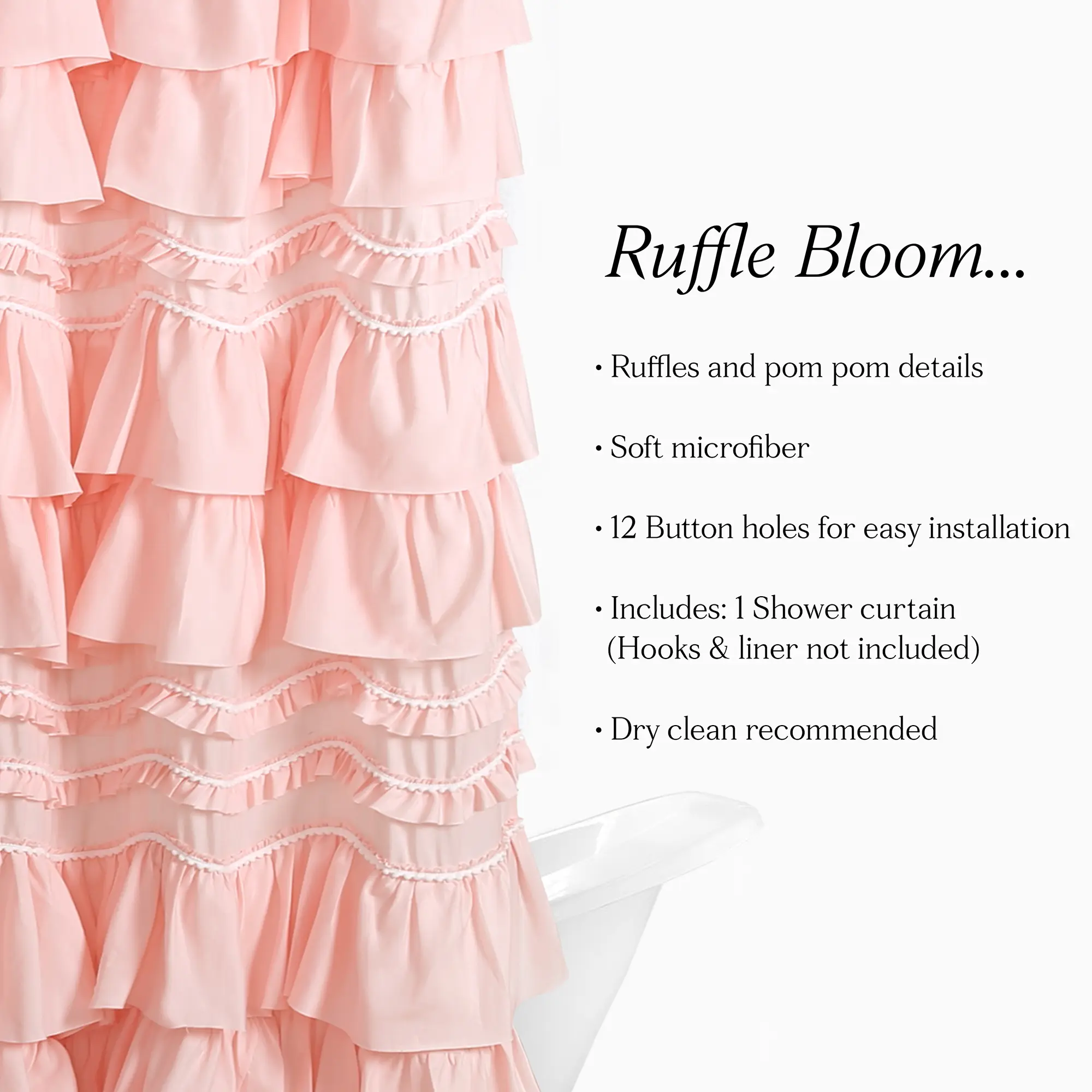 ✨ Add a whimsical touch to your bathroom with the Lush Decor Kemmy Shower Curtain. This cute curtain features layers of ruffles and pom pom trim, enhancing your coquette styled home. Perfect for all ages, it complements Parisian chic, farmhouse, or cottage core decor. 🌸