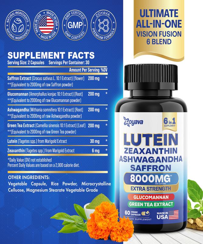 Zoyava Lutein Supplement 8000MG, with over 5+ Super Ingredients, Extra Strength & High Potency, 60 Capsules, Made in USA
