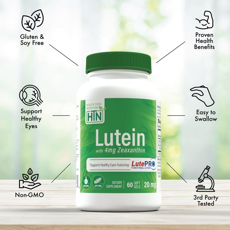 Health Thru Nutrition Lutein – 20mg with Zeaxanthin 4mg as LutePro® | Natural Eye Health & Antioxidant Support