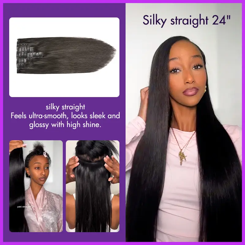 Silky Straight, 2 packs,270g【80% of users' choice】, 18inches&9 pcs,20 clips,135g