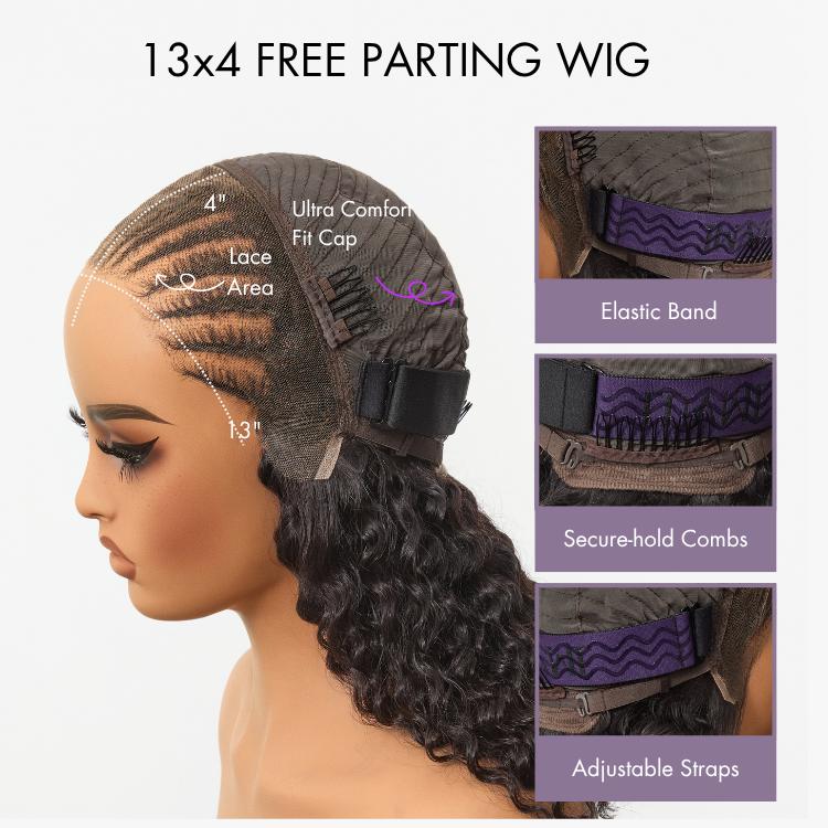 LUVME Readitress™ Knotless Fulani Braids Deep Wave Glueless Ear-to-ear 13x4 Frontal HD Lace Wig Human Hair