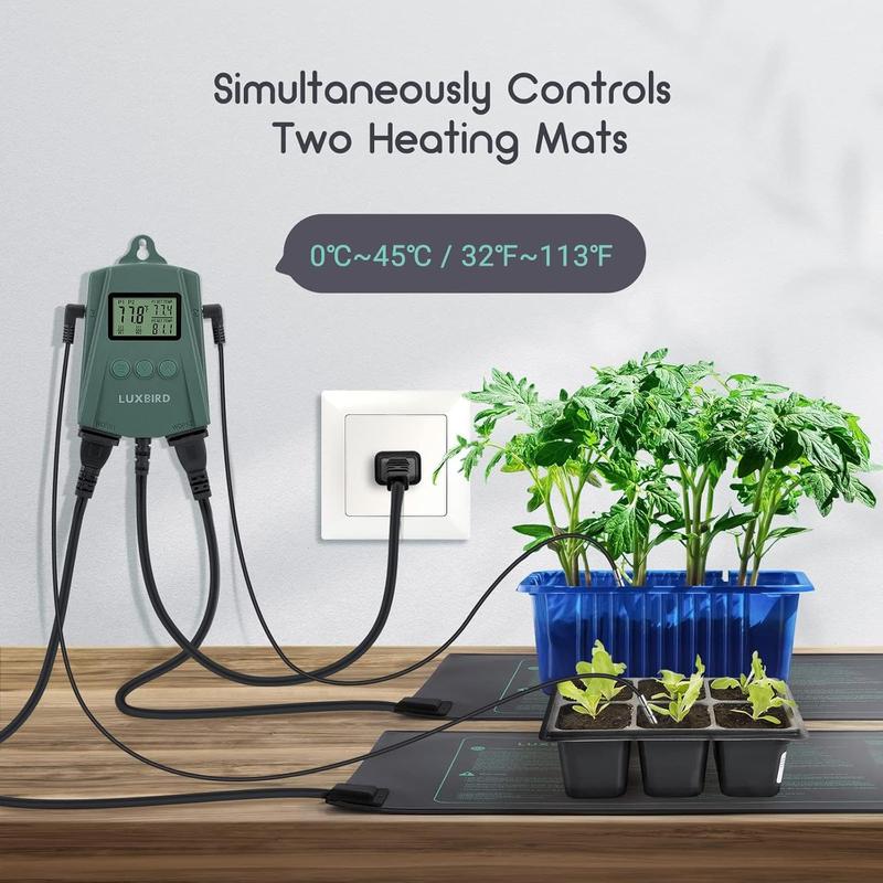 LUXBIRD 2 Pack 10"x 20.75" Seedling Heat Mat and Digital Thermostat Controller Combo Set (120v US Plug)