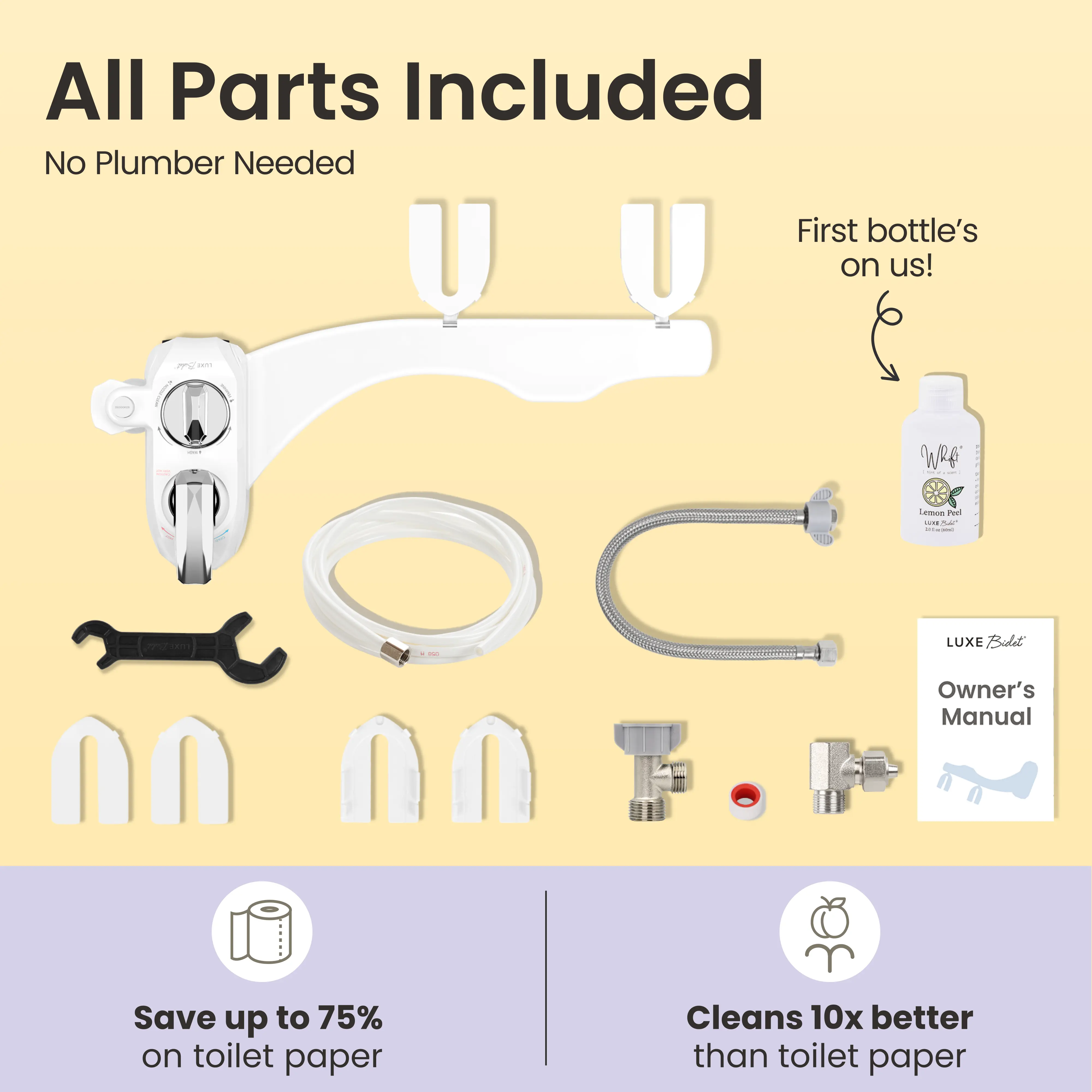 My new Whift 320 came with all of the parts needed to install the bidet onto the toilet and hook up to the existing plumbing. It is fairly easy to install yourself, however some of my friends who I had recommended purchasing a Luxe Bidet felt more comfortable having someone with plumbing experience install their bidet rather than doing it themselves.