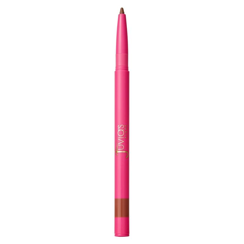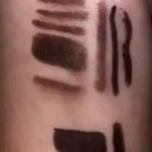 Dark brown but not pigmented. I’d say, just get the nyx line loud in shade rebel kind. Much more pigmented and doesn’t smudge with a very light swipe of a finger. You can see in the second photo how hard I tried getting out the nyx lip liner. Not worth your money, just go to your local drugstore.