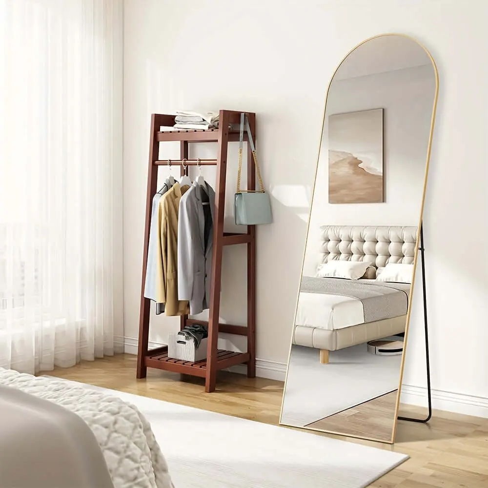 · Versatile arched/rectangular design fits any space, offering both leaning & hanging options for hotels, bathrooms, or bedrooms. No tools needed!