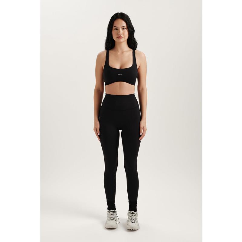 High-rise smoothing leggings with medium/high compression, seamless design, and SET ankle logo for a sleek, sculpted fit.