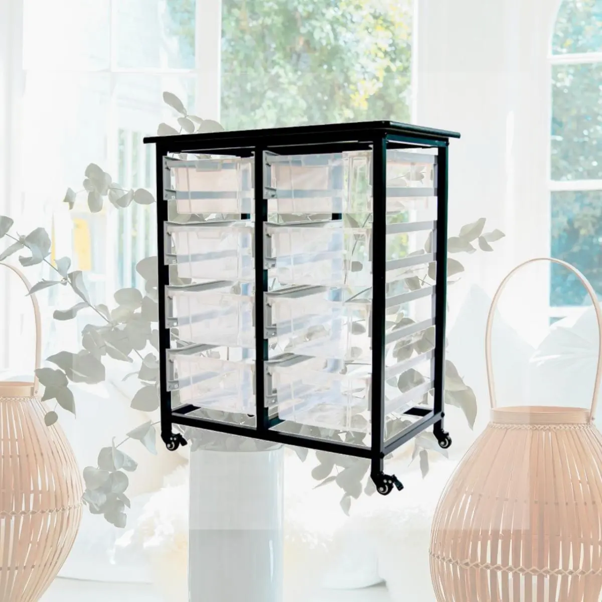 Luxor Furniture MBS-DR-8L-CL Mobile Bin Storage Unit Double Row with Large Clear Bins, Light & Dark Gray