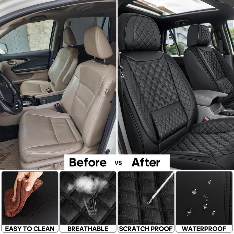 Crafted from high-quality, breathable waterproof leather, these seat covers offer a comfortable and luxurious feel. They provide excellent protection against spills, stains, and everyday wear. The soft touch ensures a pleasant experience while driving.