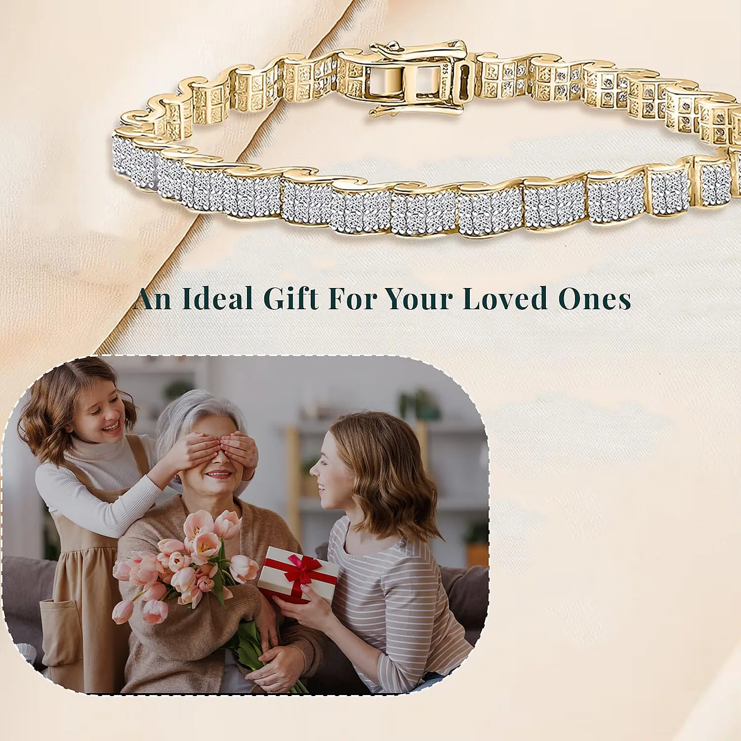This Luxuriant lab grown diamond tennis bracelet offers elegance with a modern touch. Set in yellow gold vermeil, it balances shine and sophistication. This sterling silver bracelet is ideal if you want a timeless style with thoughtful design.Details | Lab grown diamonds ensure sustainable luxury | Maximize diamond brilliance with prong setting | Lasting durability with 925 sterling silver | Luxurious shine with 18K YG vermeil | Secure closure with tab insert clasp