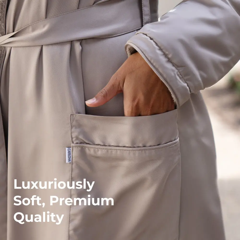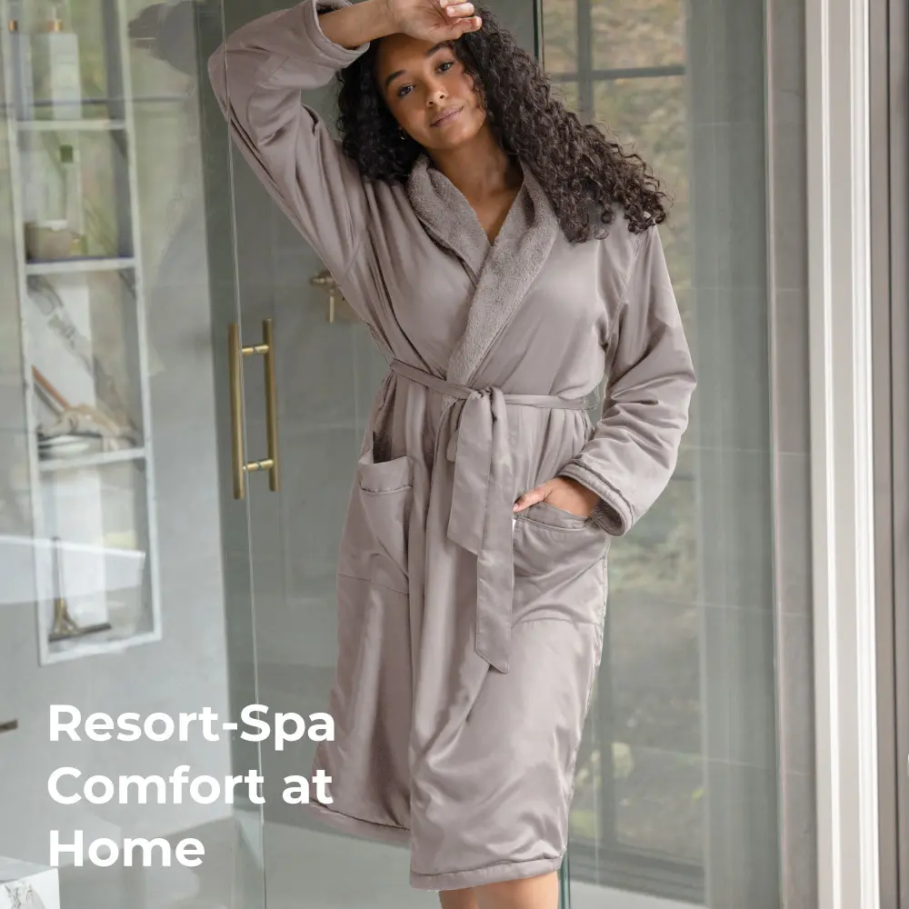 Introducing our premium Spa Robe that puts a vacation-spa vibe into your everyday life. This ultra-posh robe features a luxuriously soft sateen exterior and a sumptuously plush interior, delivering the ultimate, quintessential spa robe for all your comfy spa-days at home.