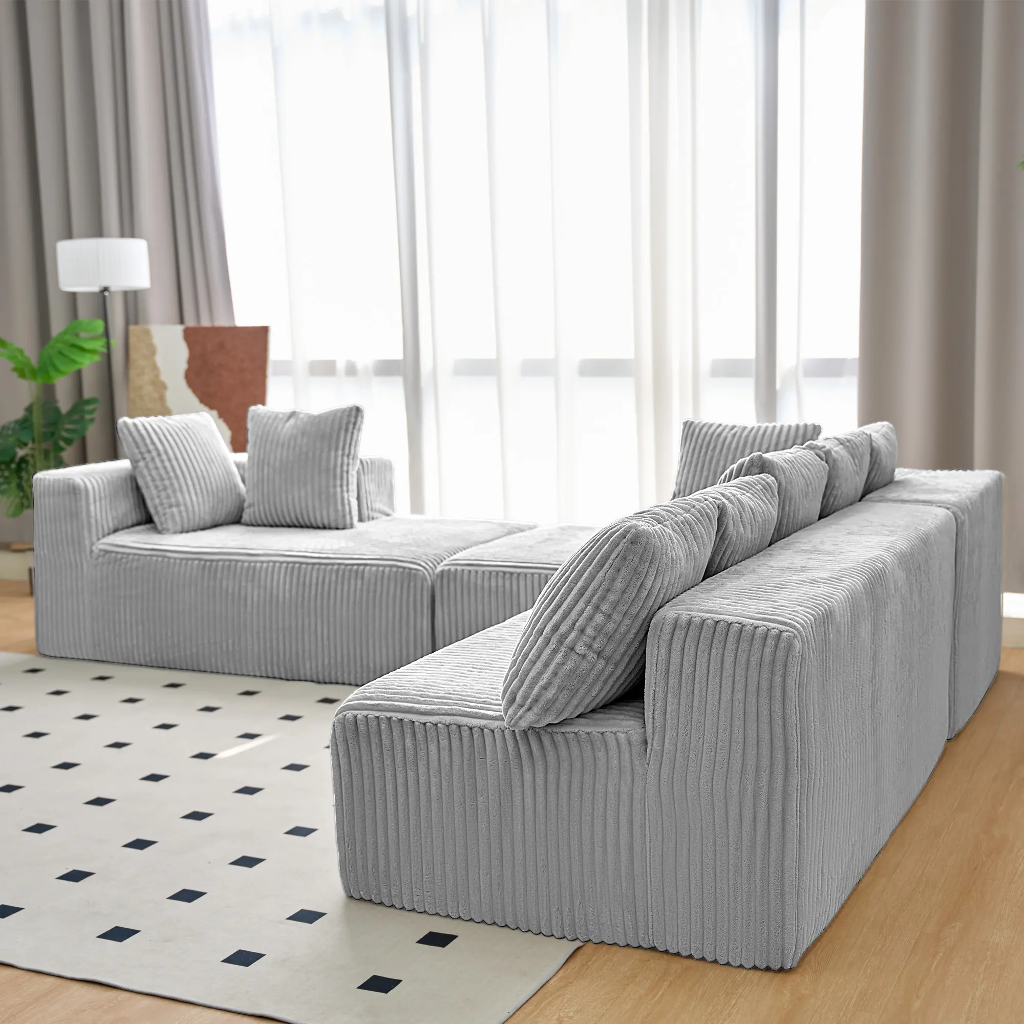 【Elegant Corduroy Sofa】Elevate your home with our modern modular U-shape corduroy rduroy sofa couch. With its sleek design, clean lines, and premium corduroy fabric, it adds a timeless and chic touch to your living room, making it the focal point of attention. Ideal for living rooms, apartments, and bedrooms.