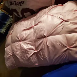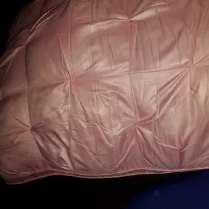 The first picture is the pillow the way it comes vacuum pack, The second picture is after I opened it and it pooped right up immediately. I love the pink color. The fabric is very soft and it feels like satin.