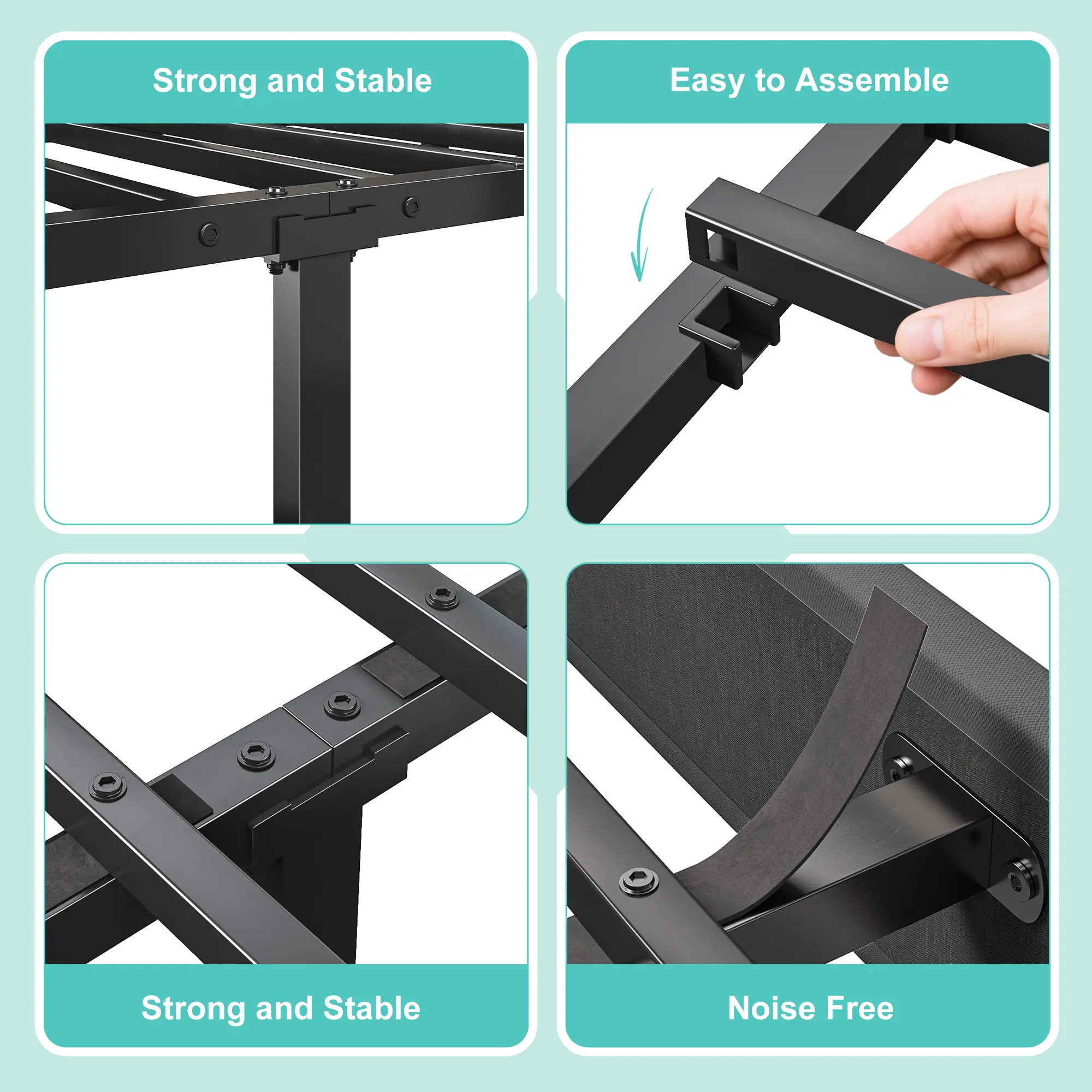 Wood & metal frame holds up to 880lbs (yes, really!). Mute sponge keeps it silent—no squeaky noises!