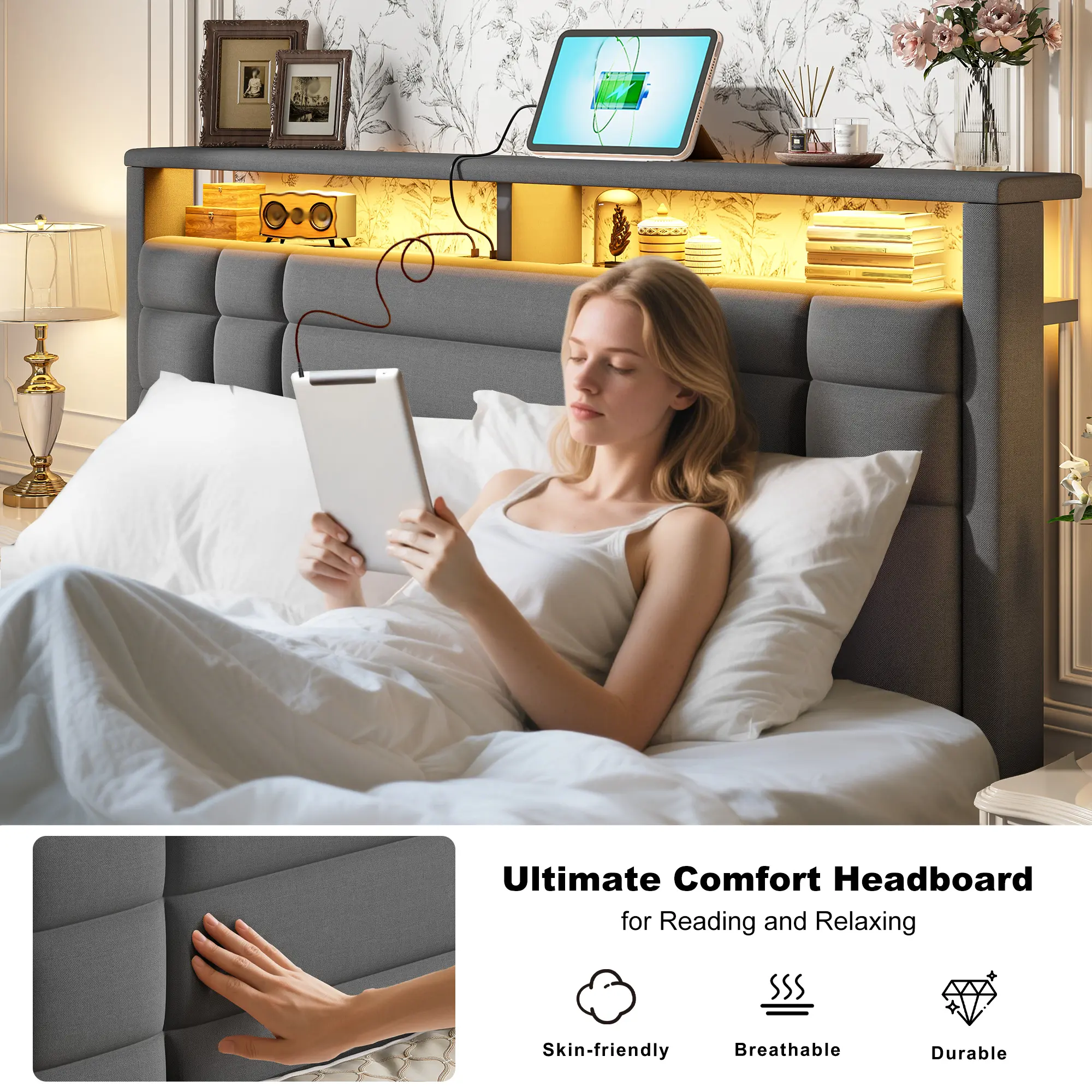 ![【Teen Size Bed】Raybee Luxury Bed Frames with Headboard & 2 Storage Shelves, Upholstered Bed Frame with LED & USB Ports for Full Queen King, Modern Bedroom Furniture, No Mattress, No Noise, Metal Slats Holds up to 880lbs[BlackFridayCyberMonday] 【Teen Size Bed】Raybee Luxury Bed Frames with Headboard & 2 Storage Shelves, Upholstered Bed Frame with LED & USB Ports for Full Queen King, Modern Bedroom Furniture, No Mattress, No Noise, Metal Slats Holds up to 880lbs[BlackFridayCyberMonday]](https://p16-oec-general-useast8.ttcdn-us.com/tos-useast8-i-rt0ujvrtvp-tx2/c503dbf85f27494dad3172ba17e80c7d~tplv-fhlh96nyum-origin-jpeg.jpeg?dr=12178&t=555f072d&ps=933b5bde&shp=a3510d86&shcp=6ce186a1&idc=useast5&from=2739998086)