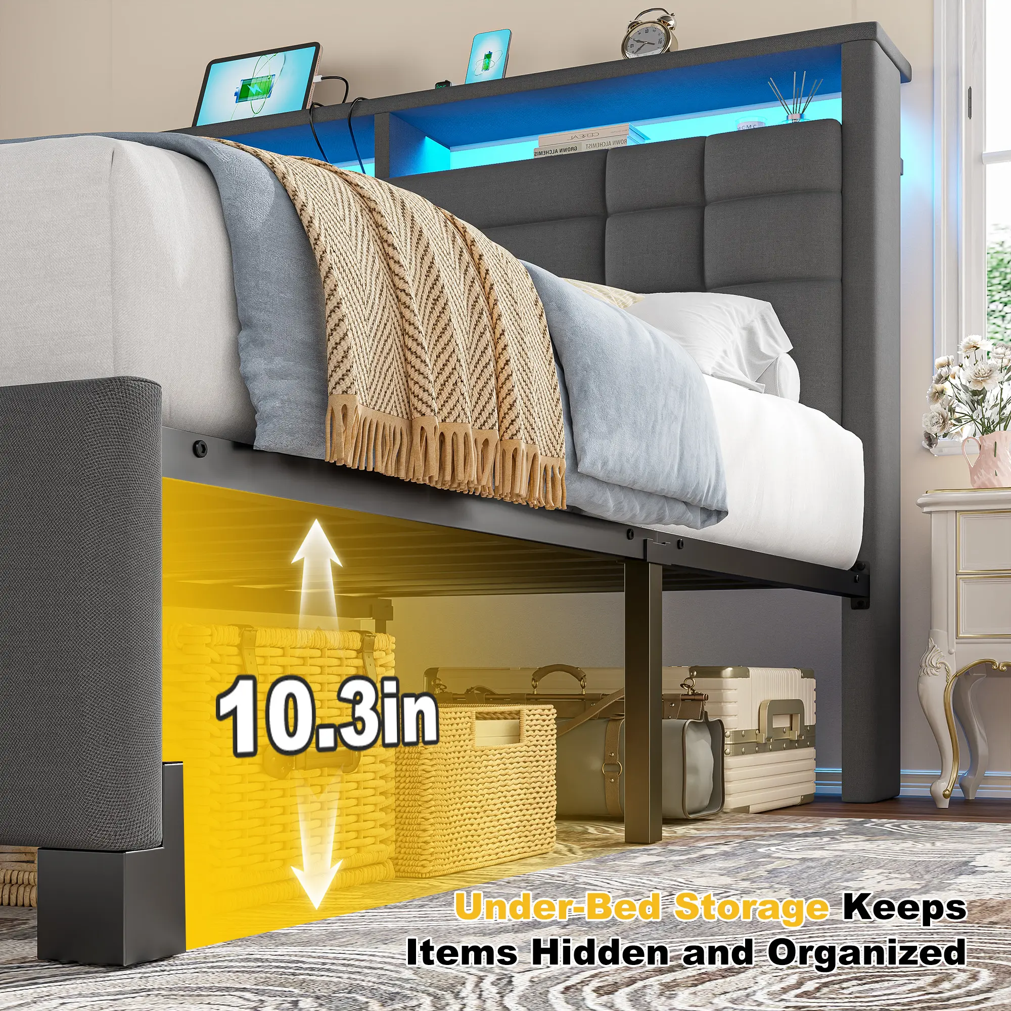 ![【Teen Size Bed】Raybee Luxury Bed Frames with Headboard & 2 Storage Shelves, Upholstered Bed Frame with LED & USB Ports for Full Queen King, Modern Bedroom Furniture, No Mattress, No Noise, Metal Slats Holds up to 880lbs[BlackFridayCyberMonday] 【Teen Size Bed】Raybee Luxury Bed Frames with Headboard & 2 Storage Shelves, Upholstered Bed Frame with LED & USB Ports for Full Queen King, Modern Bedroom Furniture, No Mattress, No Noise, Metal Slats Holds up to 880lbs[BlackFridayCyberMonday]](https://p16-oec-general-useast8.ttcdn-us.com/tos-useast8-i-rt0ujvrtvp-tx2/5b982d6947264aff99ef1fc0bc09a821~tplv-fhlh96nyum-origin-jpeg.jpeg?dr=12178&t=555f072d&ps=933b5bde&shp=a3510d86&shcp=6ce186a1&idc=useast5&from=2739998086)